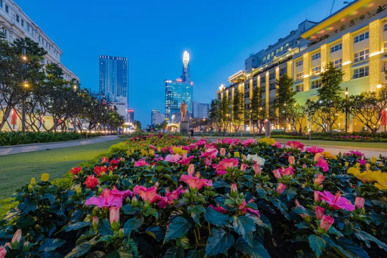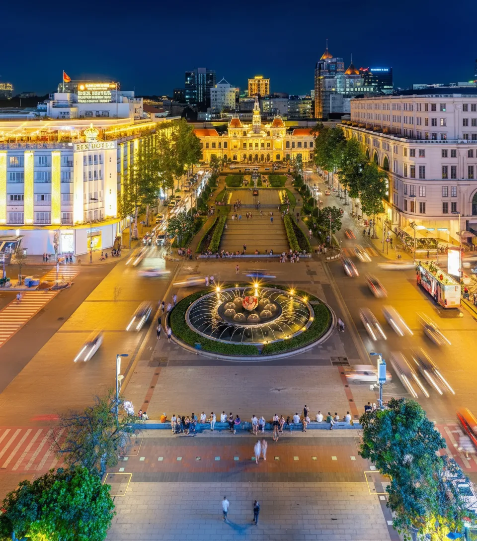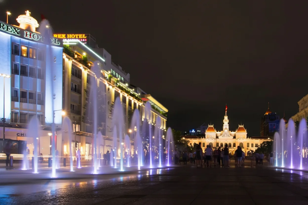 Nguyen Hue Walking Street is a wide pedestrian boulevard located in the heart of Ho Chi Minh City. The street connects major landmarks and serves as a central gathering place for residents and visitors. The area features open spaces, modern buildings, cafes, and public seating. Street performances and city activities often take place here, especially in the evening. For travelers, Nguyen Hue Walking Street offers a relaxed way to experience modern city life and enjoy an open urban environment.