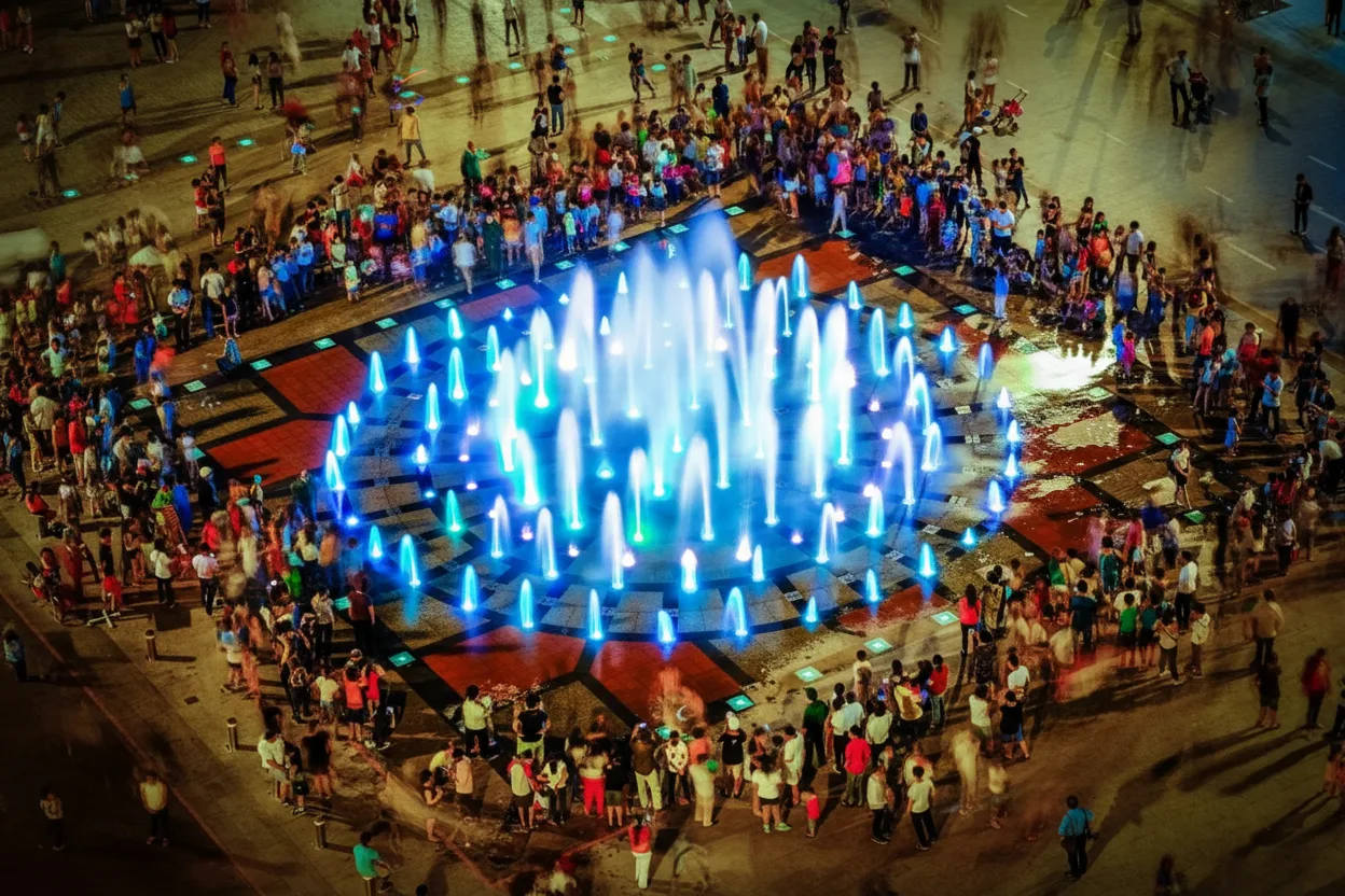 • 🕕 18:30 – Watch the lively street activities 🎭 and the colorful fountain shows ⛲