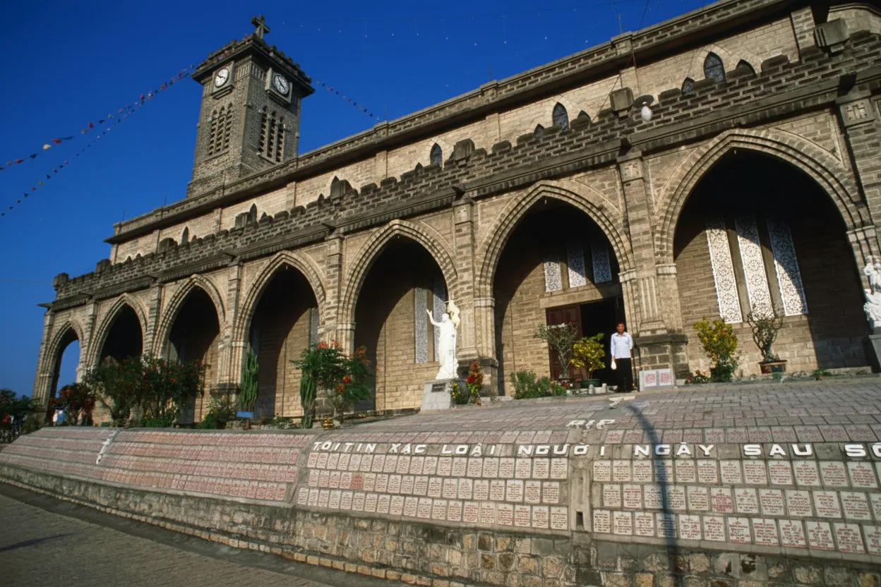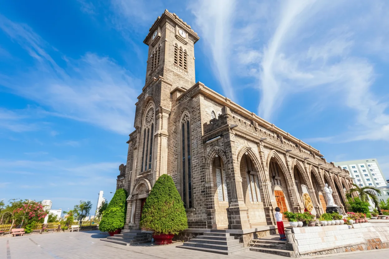 Nha Trang Cathedral is a historic Catholic church built during the French colonial period. It is known for its Gothic architectural style, stone construction, and elevated location overlooking the city. The cathedral remains an active place of worship while also serving as an important cultural and architectural landmark in Nha Trang. For travelers, Nha Trang Cathedral offers a quiet and reflective space combined with city views and historical significance.