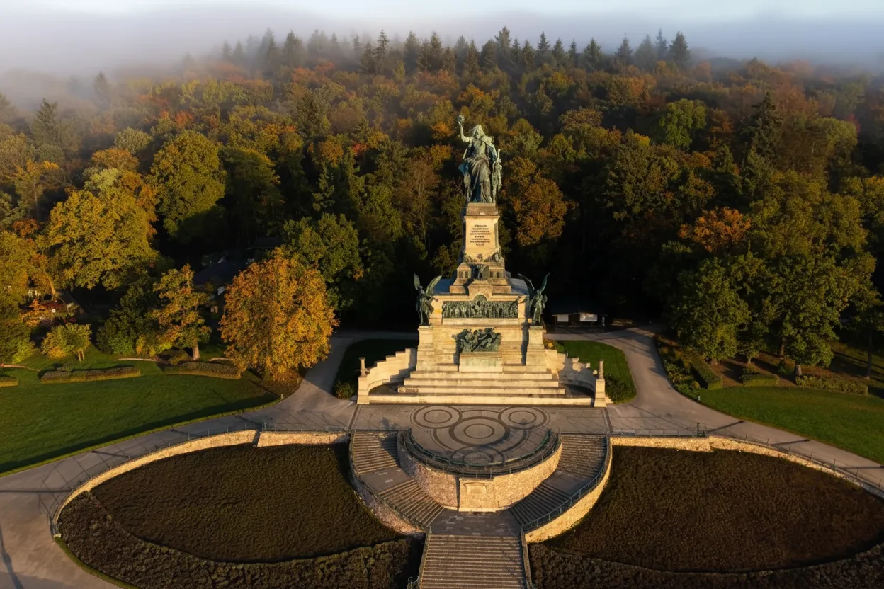 The Niederwald Monument, located above the vineyards of Rüdesheim am Rhein, is one of the Rhine Valley’s most iconic viewpoints. Built in the late 19th century, the monument commemorates the unification of Germany and offers sweeping panoramic views over the Rhine River, UNESCO-listed landscapes, and surrounding wine regions.