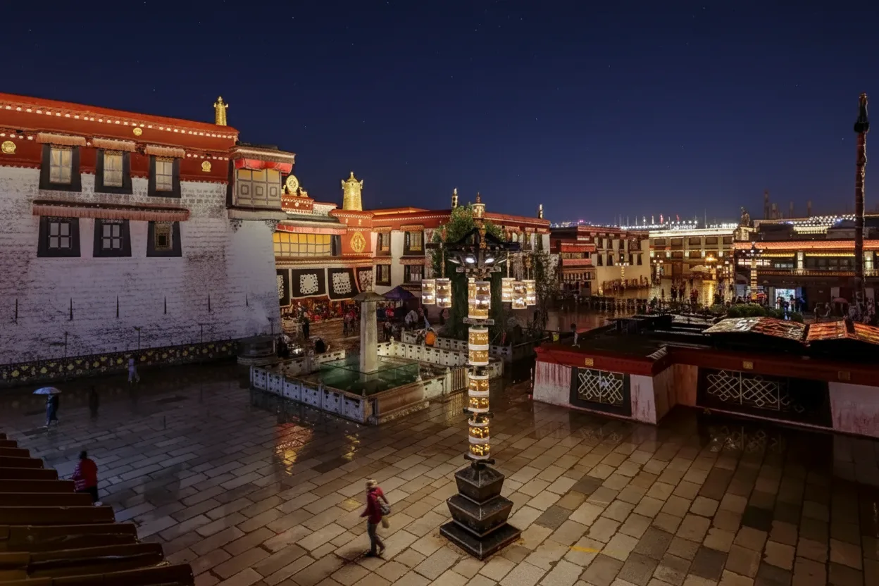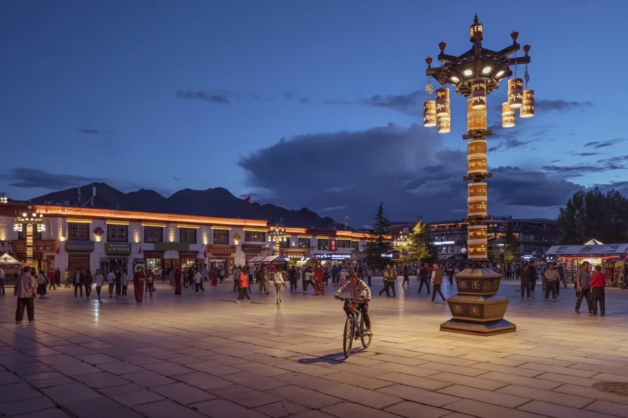 • 🏯 7:00 PM – Arrive at the illuminated 🛕 Jokhang Temple area ✨