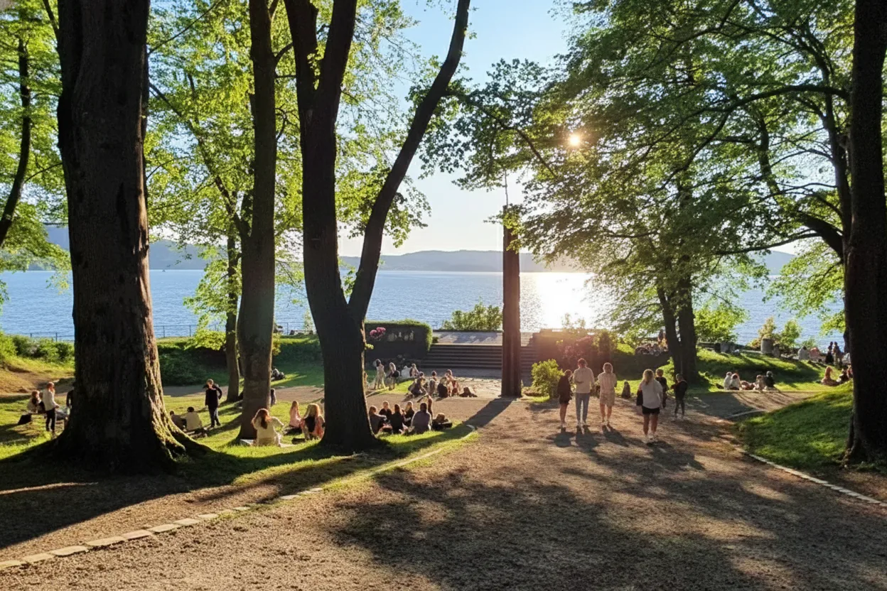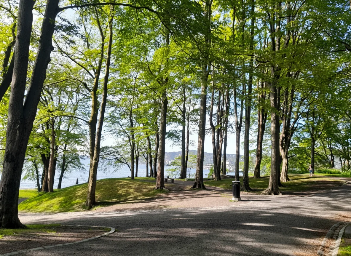 Norway. The park offers open green spaces, walking paths, and wide views of the sea, making it a