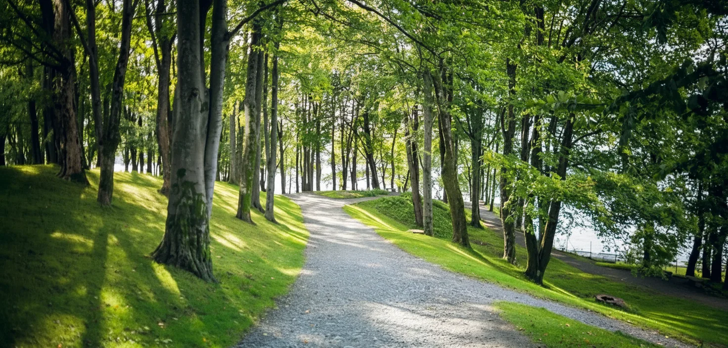 landscapes. The park is ideal for casual walks, picnics, and sunset views over the water.
