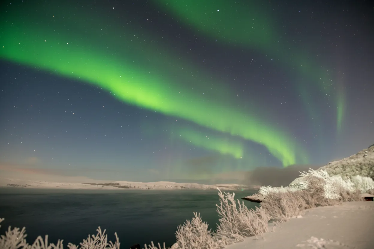 Northern Lights viewing areas around Kirkenes are among the best places in Northern Norway to experience the Aurora Borealis. Located far above the Arctic Circle, Kirkenes offers dark skies, low light pollution, and frequent aurora activity during winter. Viewing areas include open valleys, frozen lakes, forest clearings, and coastal viewpoints. These locations provide clear horizons and quiet surroundings, allowing travelers to enjoy the natural light displays in comfort.