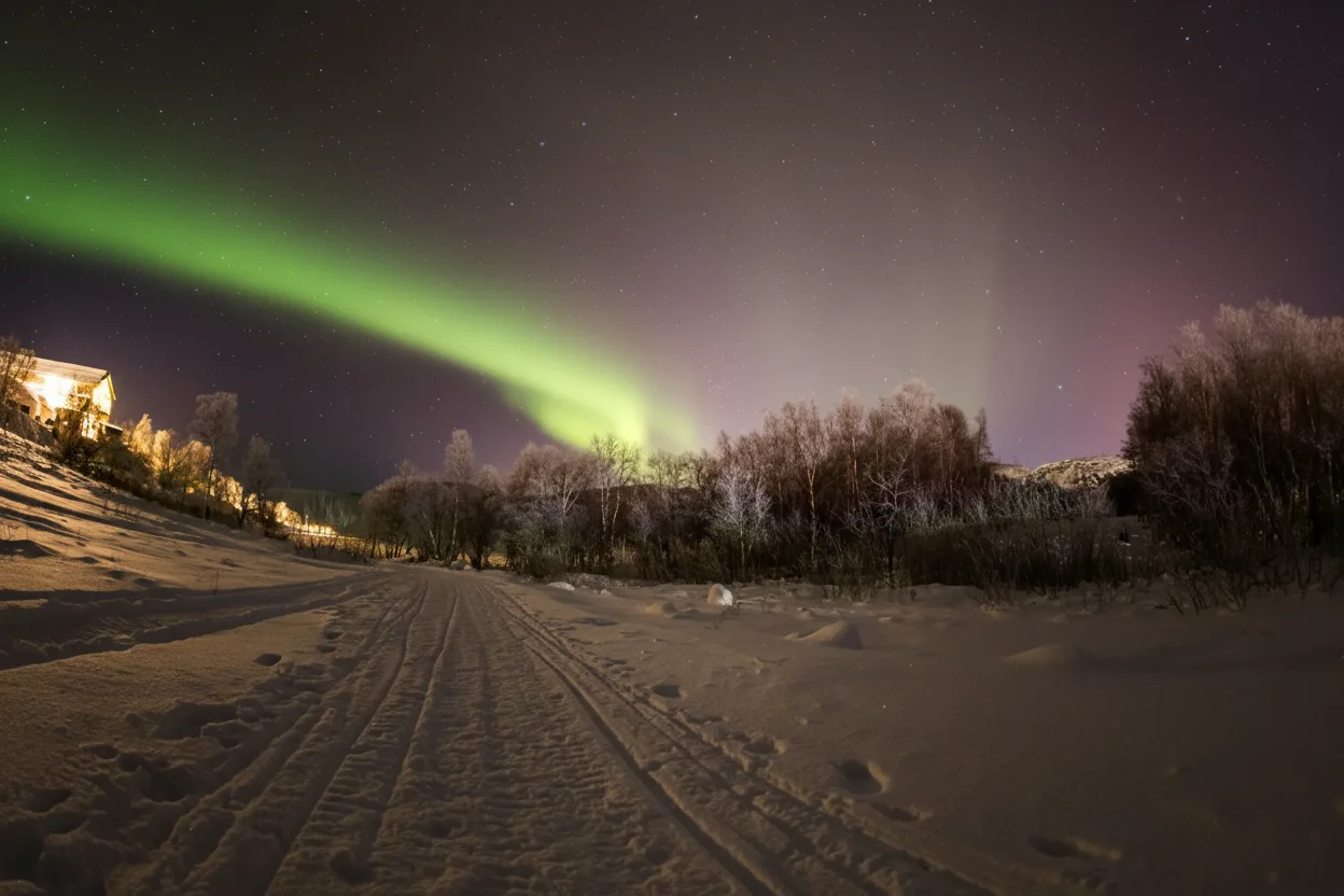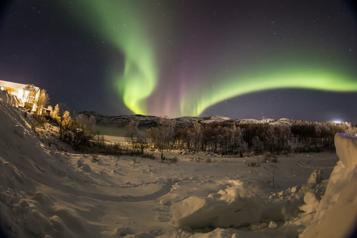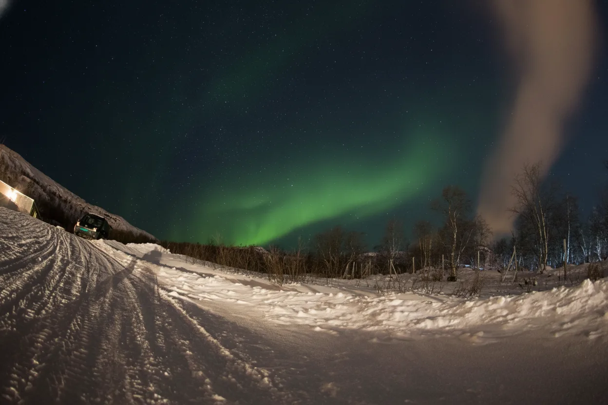 • 🚗 Drive a short distance from the center of Kirkenes town to reach dark areas 📍