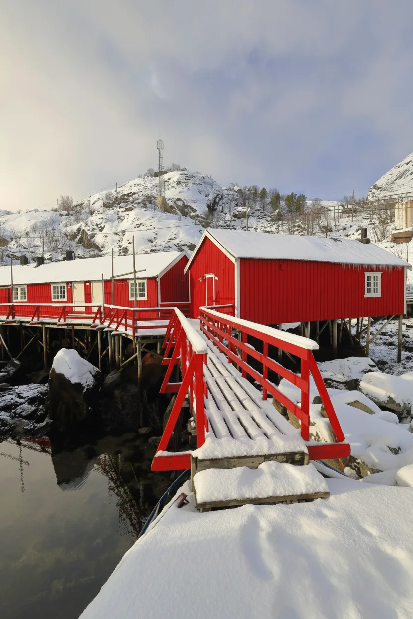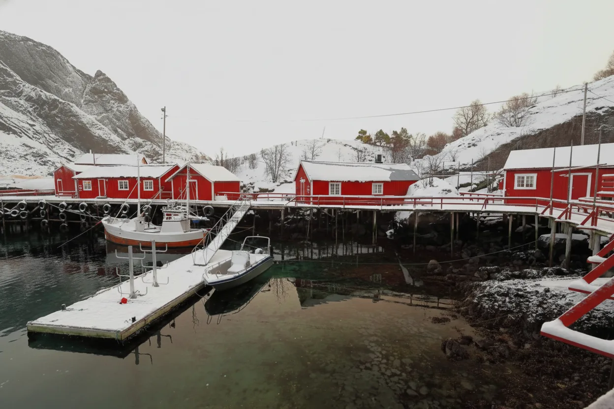 - 📸 Photograph the traditional rorbuer cabins lining the quiet harbor ⚓