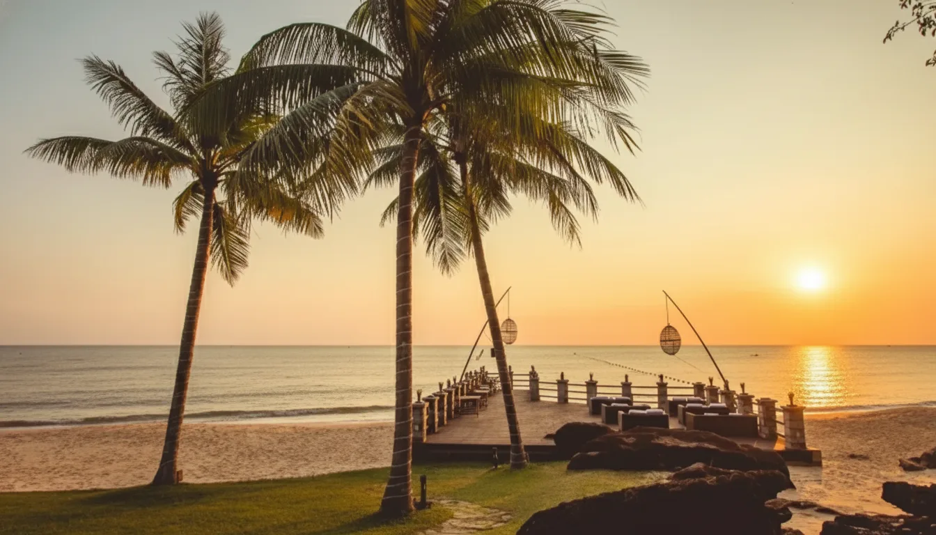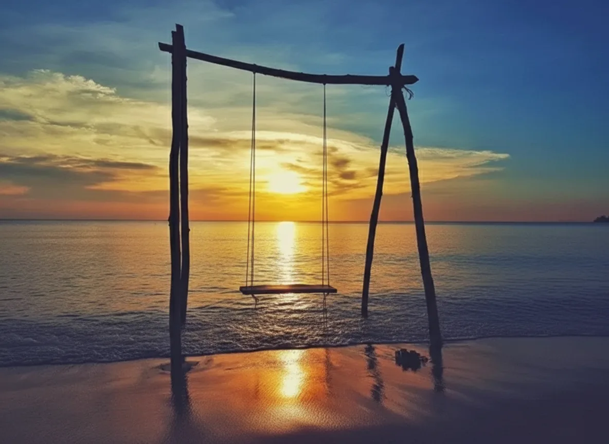 calm beach settings, quiet sunset views, and simple seaside relaxation.