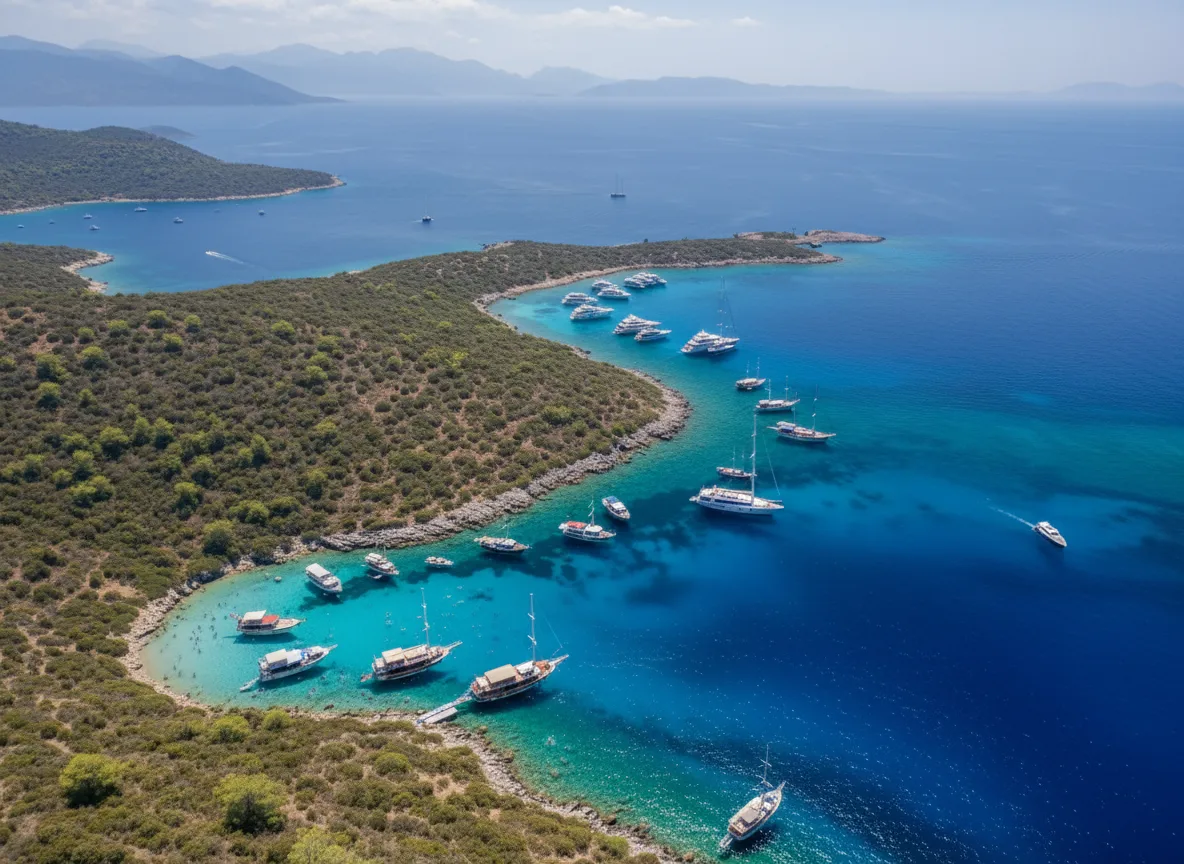Orak Island Coastline near Foça, Turkey, is known for its clear Aegean waters and natural coastal scenery. Although the island itself is not always accessible, viewpoints along the coast offer beautiful sea views and a calm atmosphere ideal for photography and relaxation.