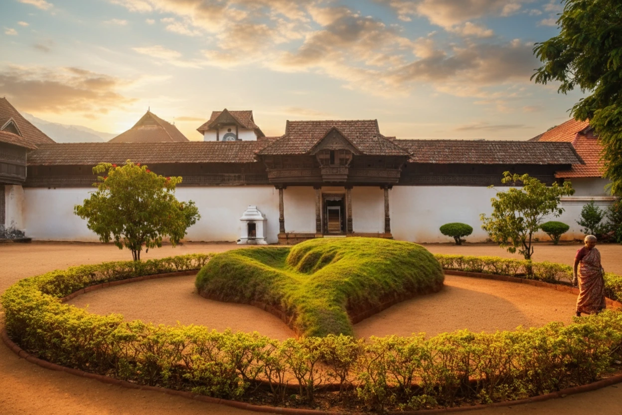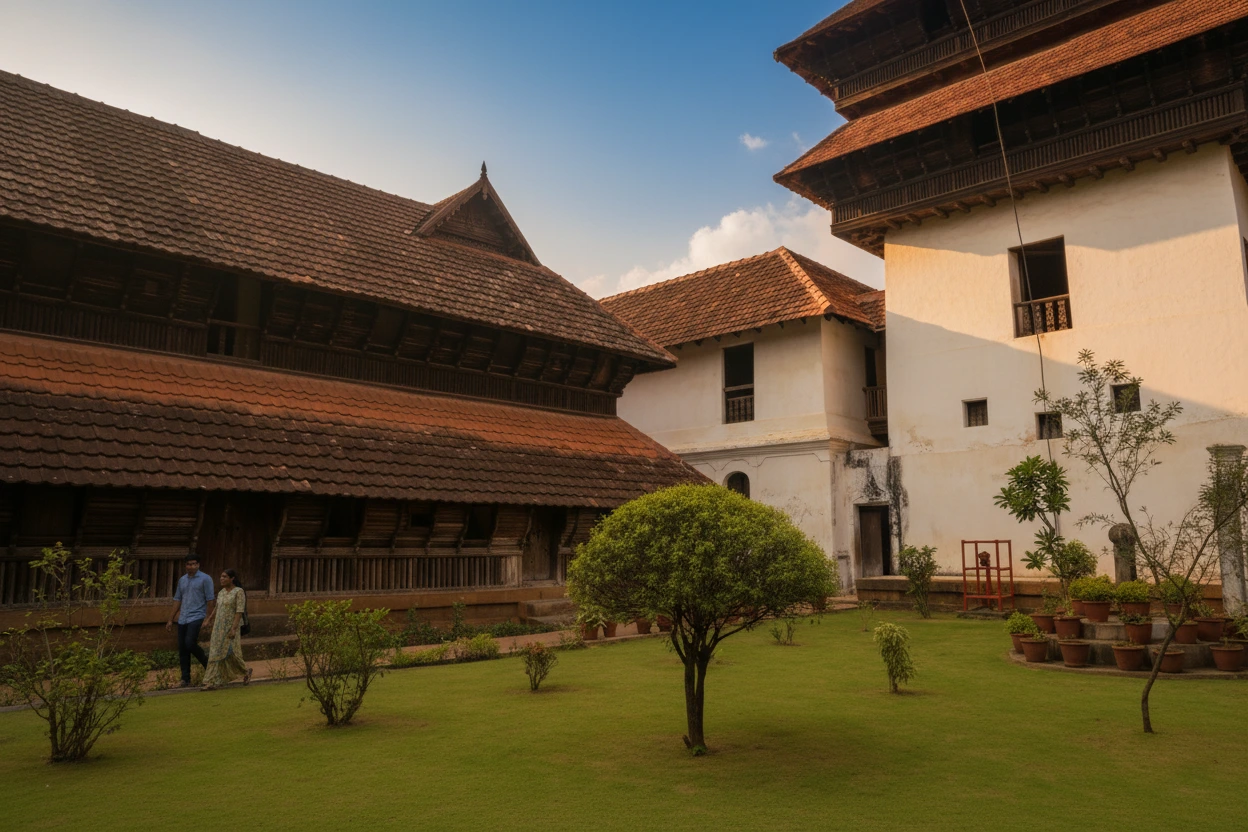 Padmanabhapuram Palace, located near Kanyakumari in the town of Thuckalay, is one of the finest examples of traditional Kerala-style wooden architecture. Built in the 16th century, the palace complex includes intricately carved wooden pillars, spacious courtyards, wall murals, and antique furnishings. Visitors can walk through the beautifully preserved rooms, hallways, and historical exhibits that demonstrate royal lifestyle and craftsmanship. The palace is surrounded by scenic greenery, creating a peaceful environment for cultural exploration.