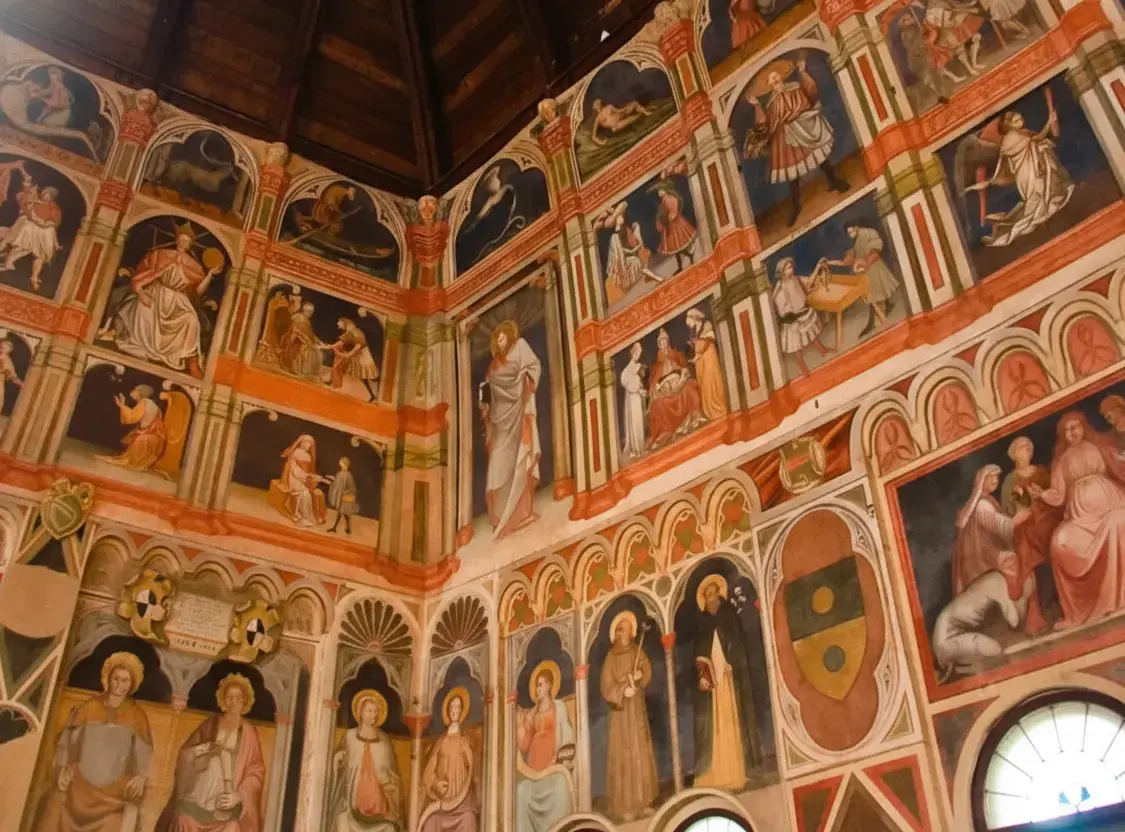• Astrological Frescoes 💫 – covering walls 🖼️ and ceilings ⏫ with vivid medieval symbolism 📜✨