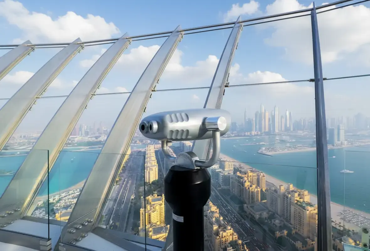 Jumeirah, this observation deck provides a 360° view of the city skyline, the Arabian Gulf,