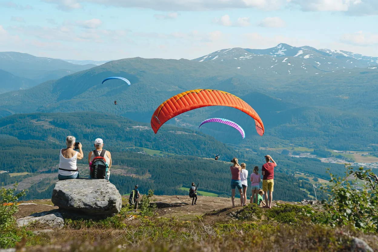 Voss is internationally known as one of Norway’s top paragliding destinations, offering several well-established launch sites around the valley. These locations provide wide, open takeoff areas and impressive aerial views. From the air, paragliders enjoy panoramic scenery of mountains, lakes, rivers, and farmland. Both tandem flights for beginners and solo launches for experienced pilots are available. For travelers, paragliding in Voss offers a unique way to experience the landscape from a completely different perspective.