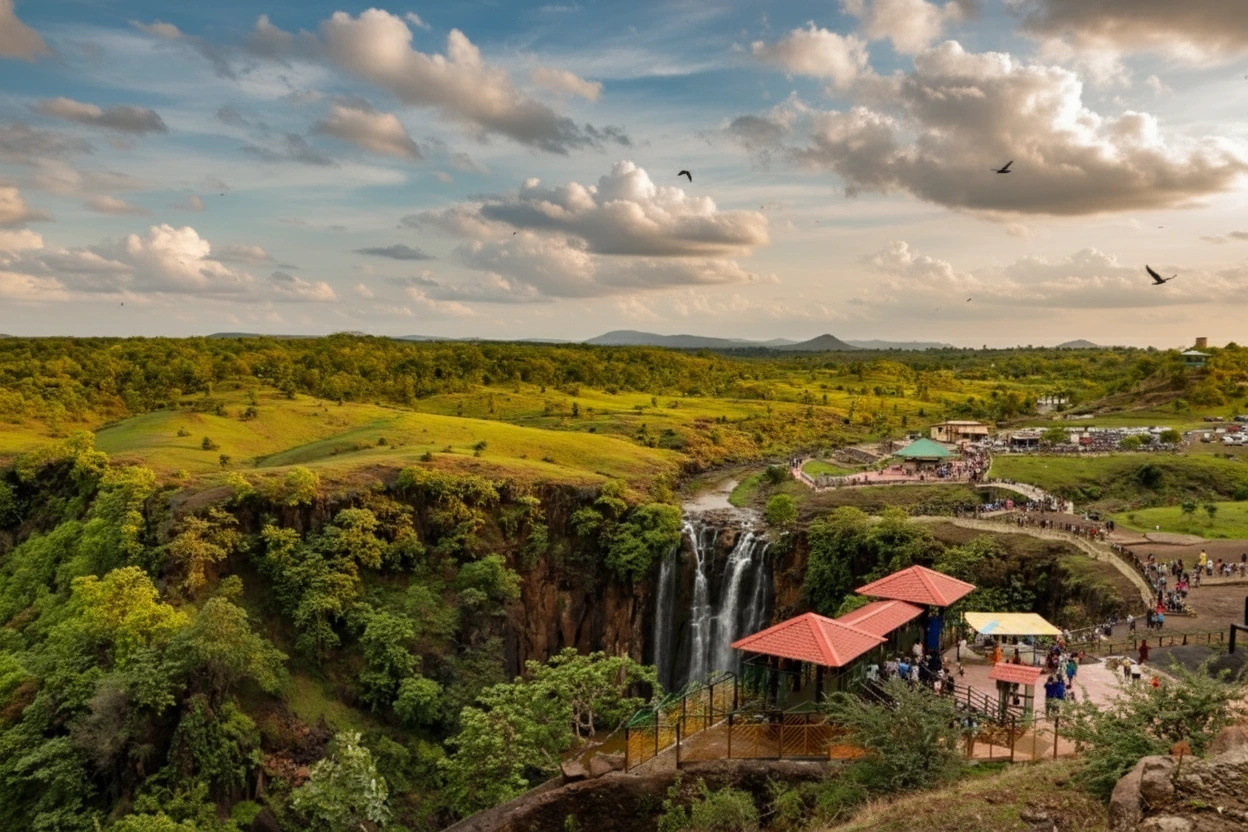 Patalpani Waterfall is one of the most popular natural attractions near Indore, Madhya Pradesh. Located amidst hills and greenery, the waterfall is especially impressive during the monsoon season when water flows heavily into the rocky valley below.