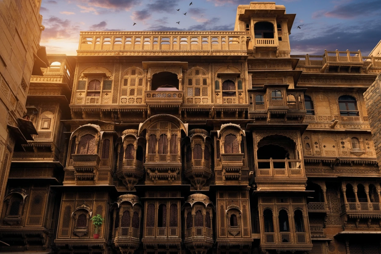 Patwon Ki Haveli is a cluster of five grand havelis located in the heart of Jaisalmer, Rajasthan. Built by a wealthy merchant family in the early 19th century, these havelis are famous for their detailed carvings and intricate sandstone work.