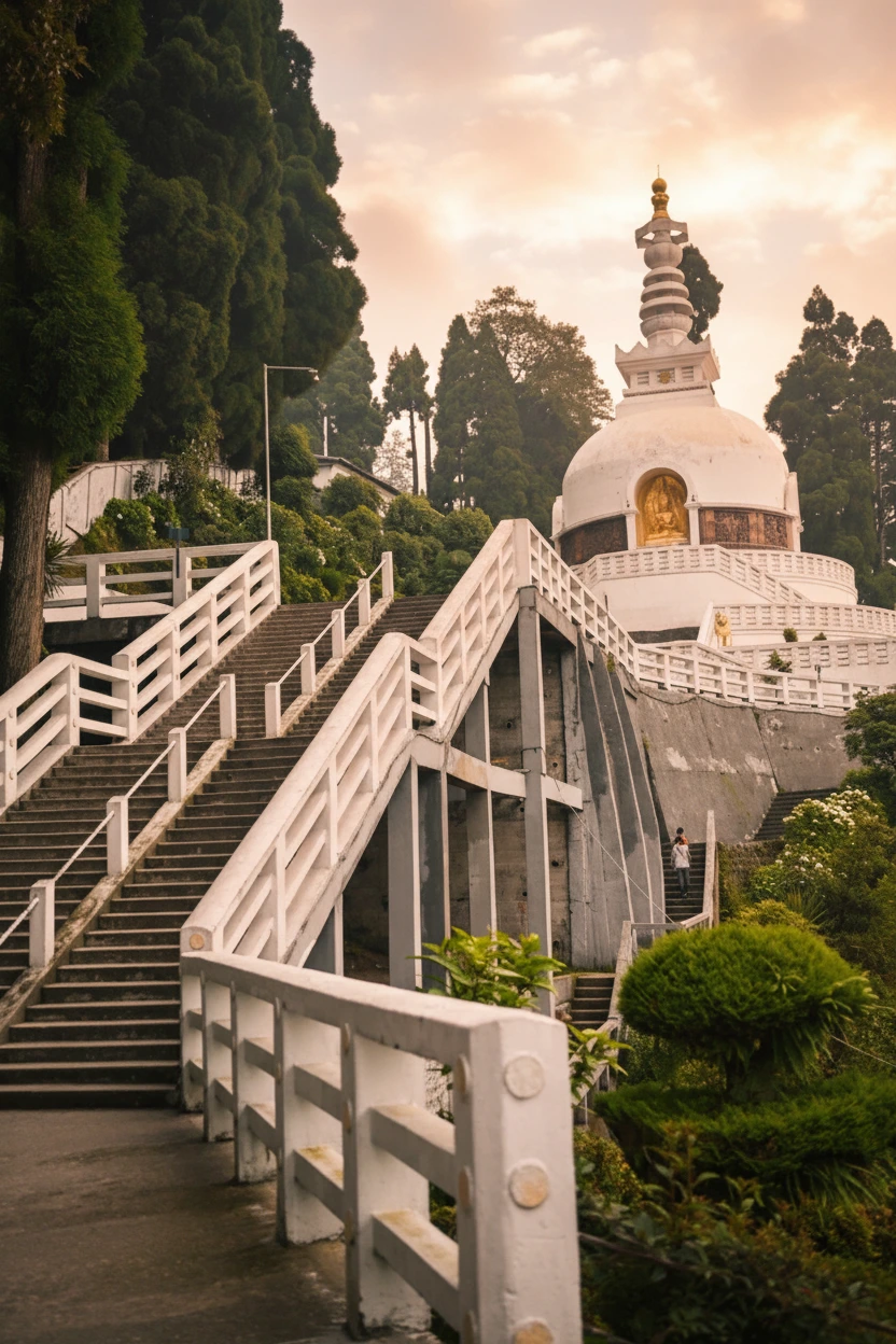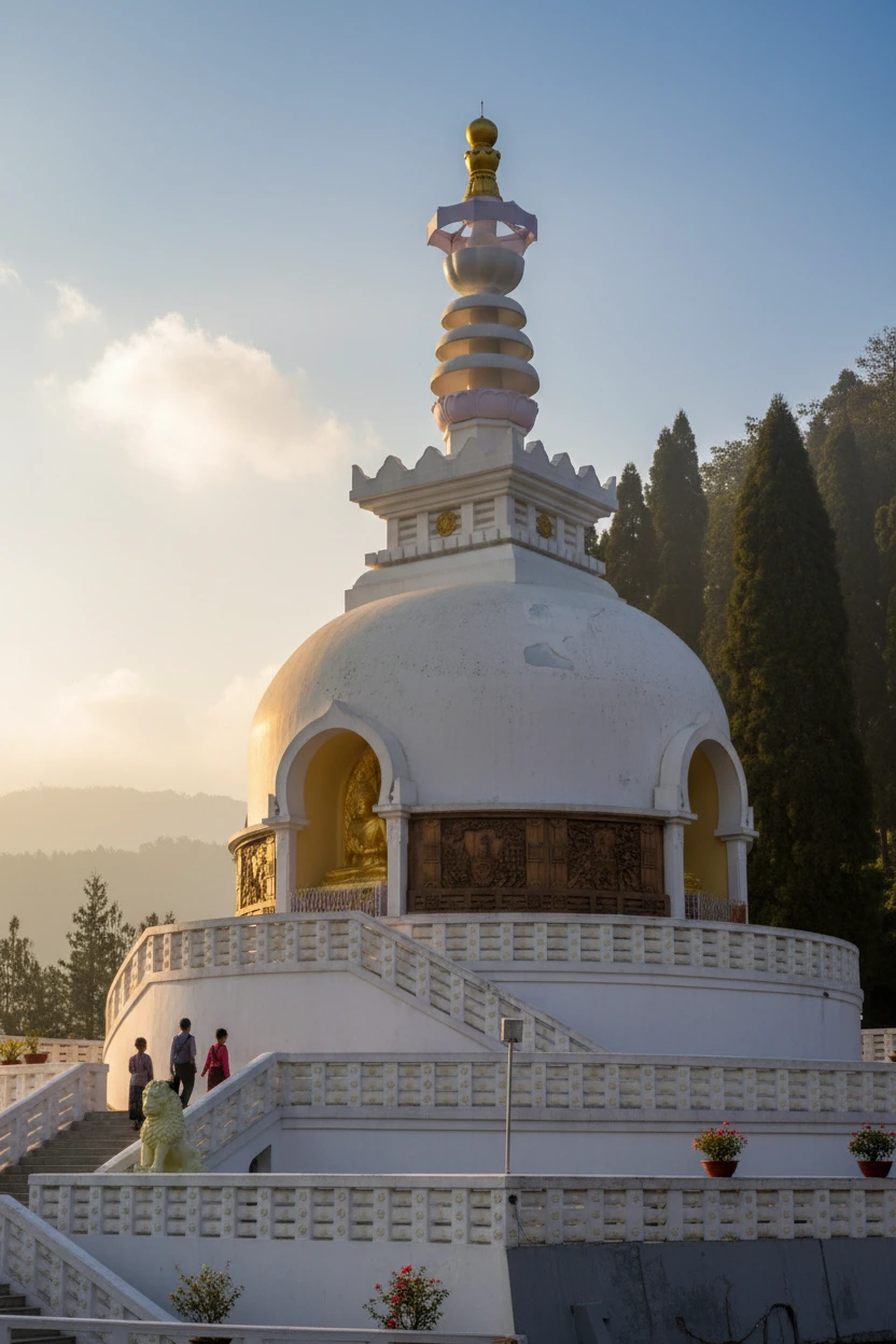 The Peace Pagoda in Darjeeling is a calm and spiritual monument built to promote peace and harmony. Set on a hilltop, the pagoda offers panoramic views of the surrounding hills and a tranquil atmosphere away from the town center. For travelers, the Peace Pagoda provides a quiet space for reflection and scenic views. It is an ideal place to relax, meditate, and enjoy Darjeeling’s peaceful side.