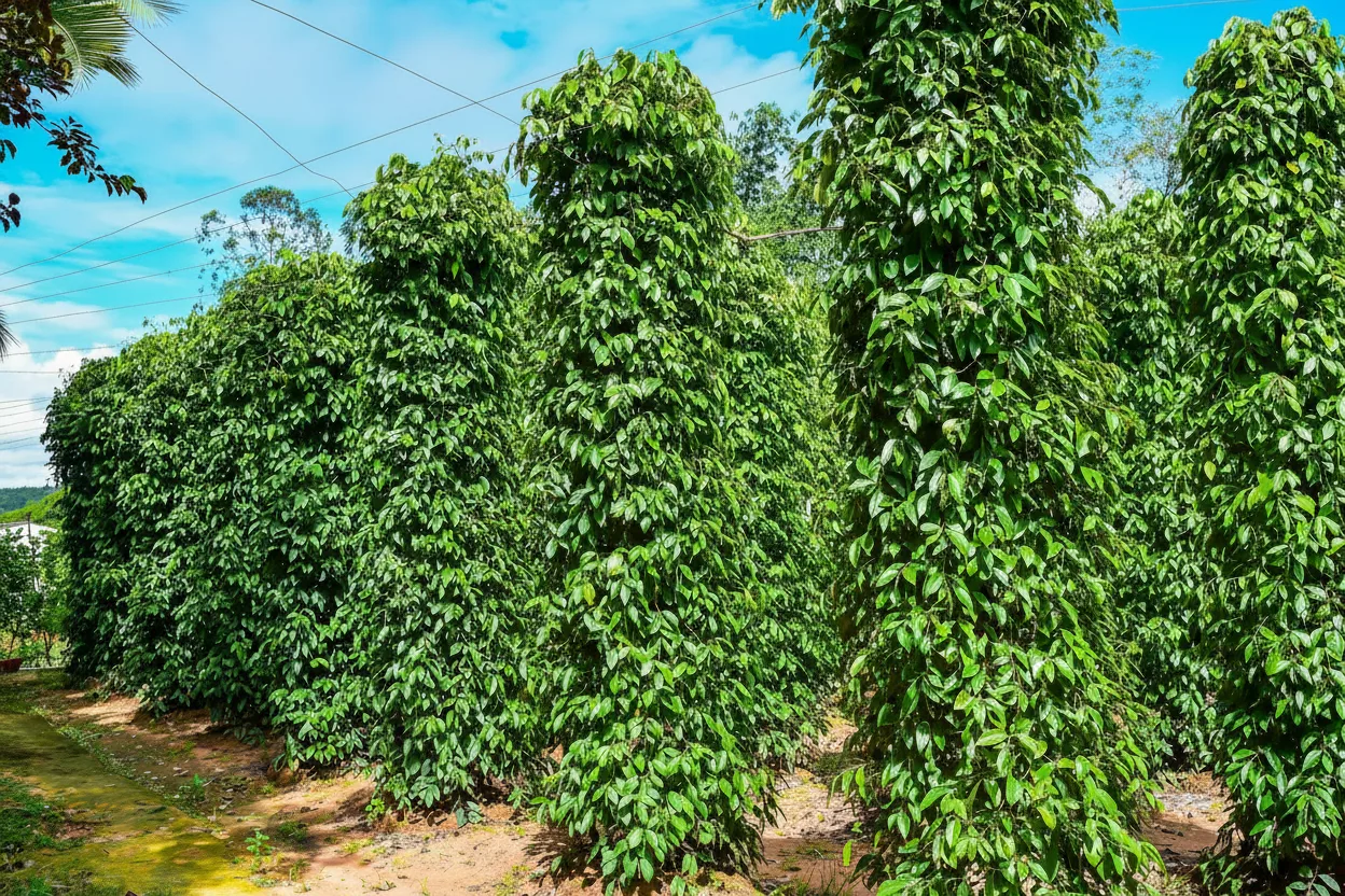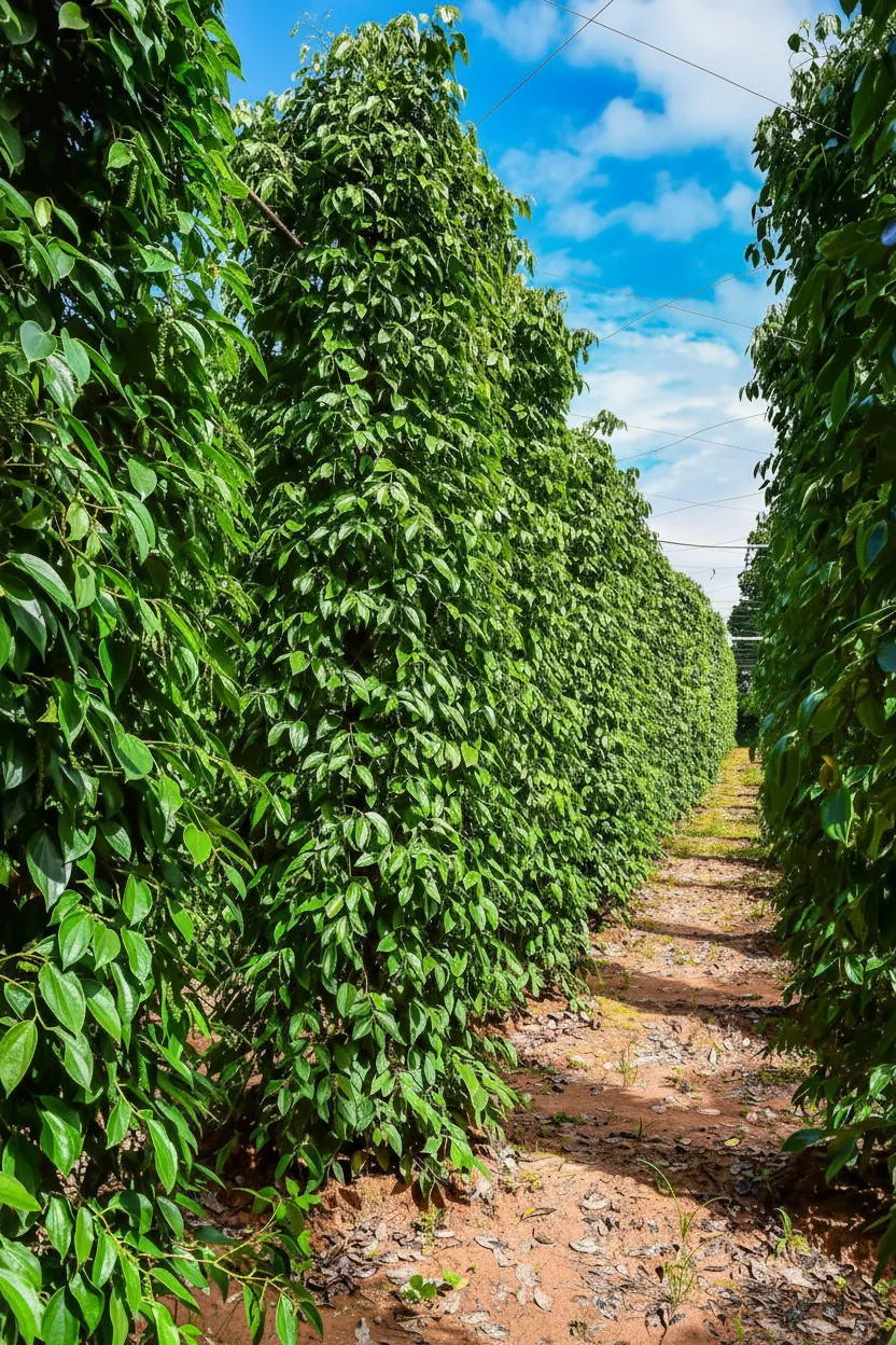 - 🌿 Walk through pepper plant rows where green plantations 🌱 stretch across peaceful island countryside landscapes 🌄