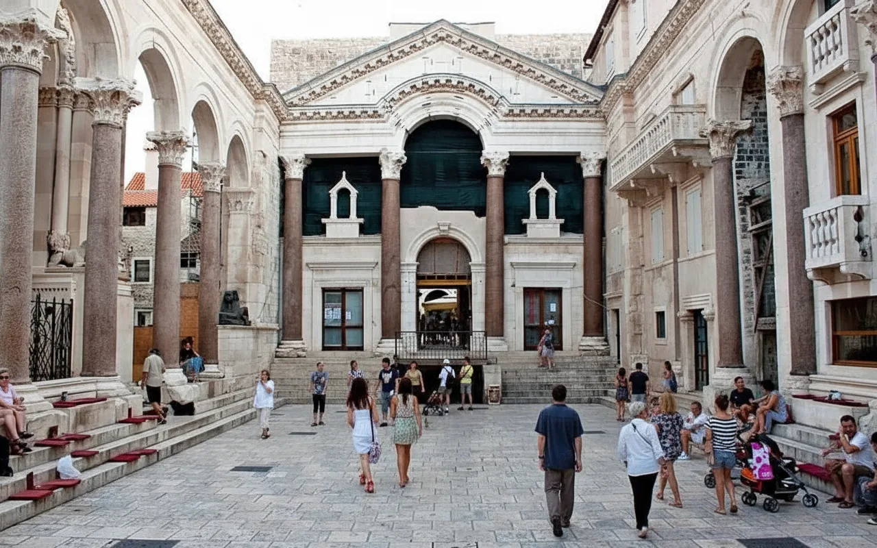 - 👣 9:30 AM – Walk through the winding palace 🏰 streets to Peristyle Square 📍