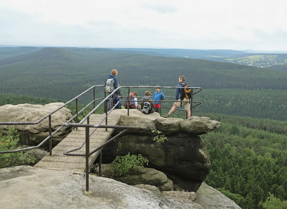 Pfaffenstein Mountain is a popular hiking peak in Saxon Switzerland, known for its dramatic cliffs, panoramic viewpoints, and historic landmarks. The mountain is also home to the famous Barbarine Rock Needle, a unique sandstone pillar rising from the summit. Pfaffenstein offers a mix of scenic trails, forest paths, and breathtaking vistas, making it ideal for hikers and photographers.
