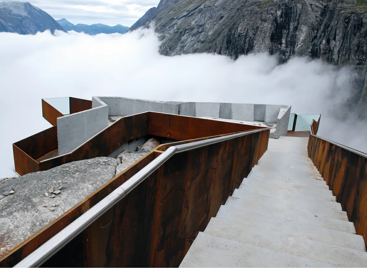 • 🏛️ Access the platforms directly from the Trollstigen 🚶 Visitor Center via the integrated steel boardwalks 📍