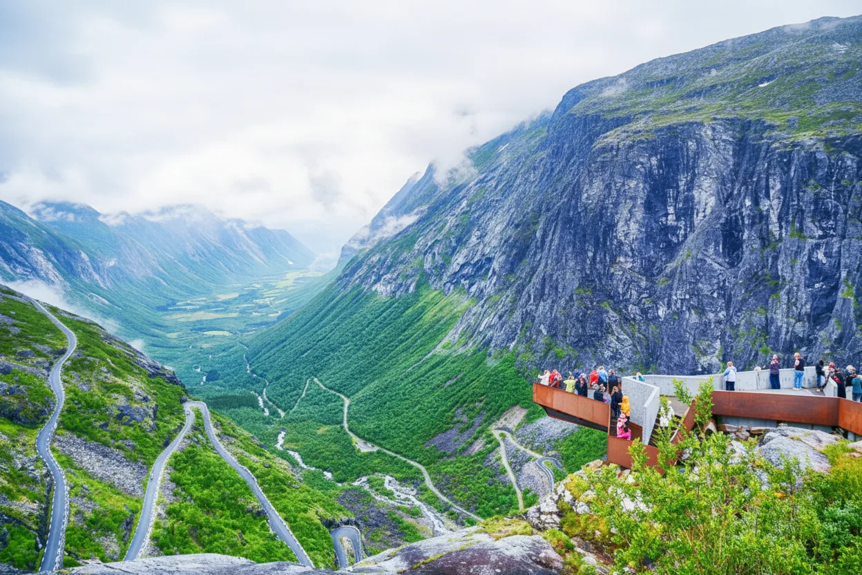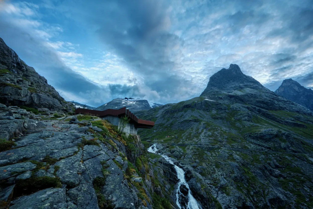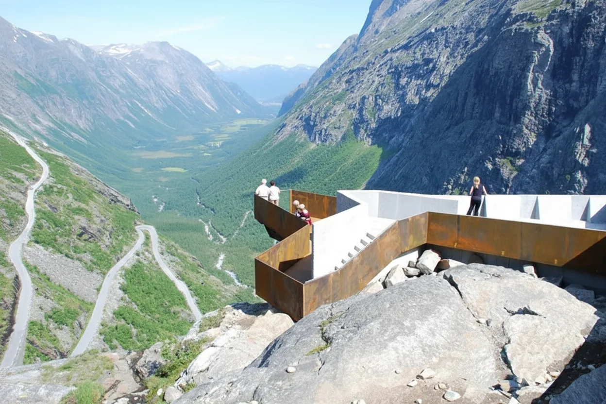 Photography Platforms along Trollstigen are purpose‑built viewing areas designed to give visitors safe and stable locations for capturing dramatic landscapes. These platforms offer exceptional angles over the valley, mountain walls, and the winding hairpin road.