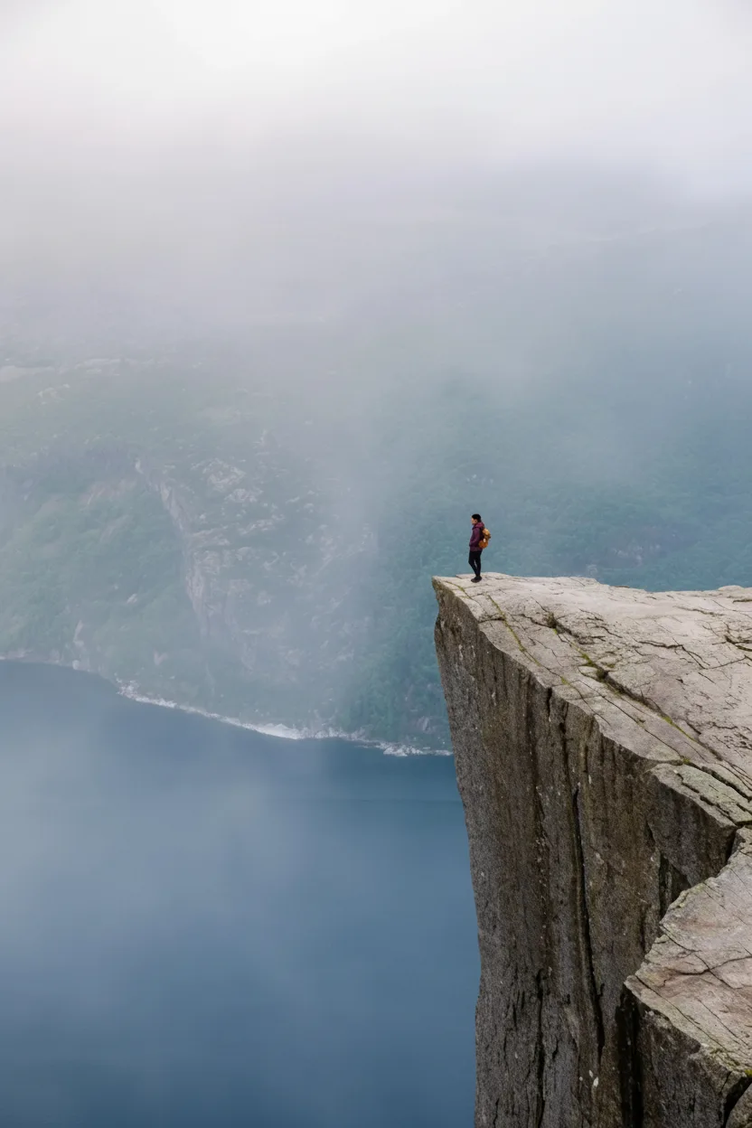 • 🌊 Frame the 40km Lysefjord 🔭 using the cliff’s leading lines to guide the eye toward the sea 🎞️