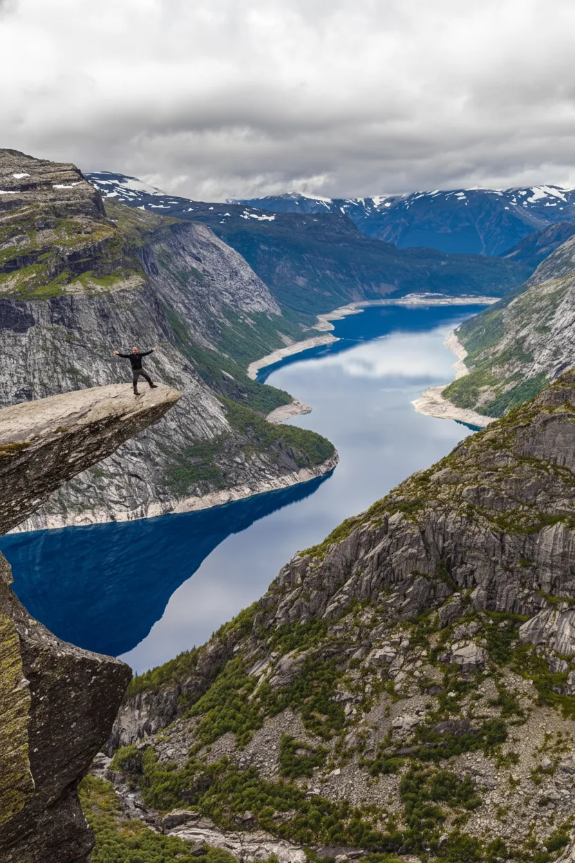 • 🔭 Bring a 14-35mm wide-angle lens 📸 for the fjord and a 70-200mm for hiker scale 🎞️
