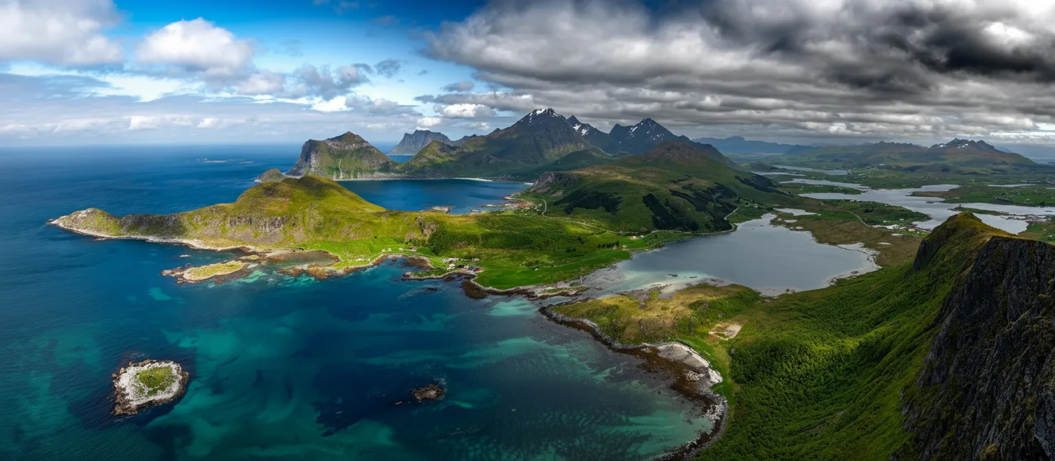 peaks, white sand beaches, traditional fishing villages, and constantly changing Arctic