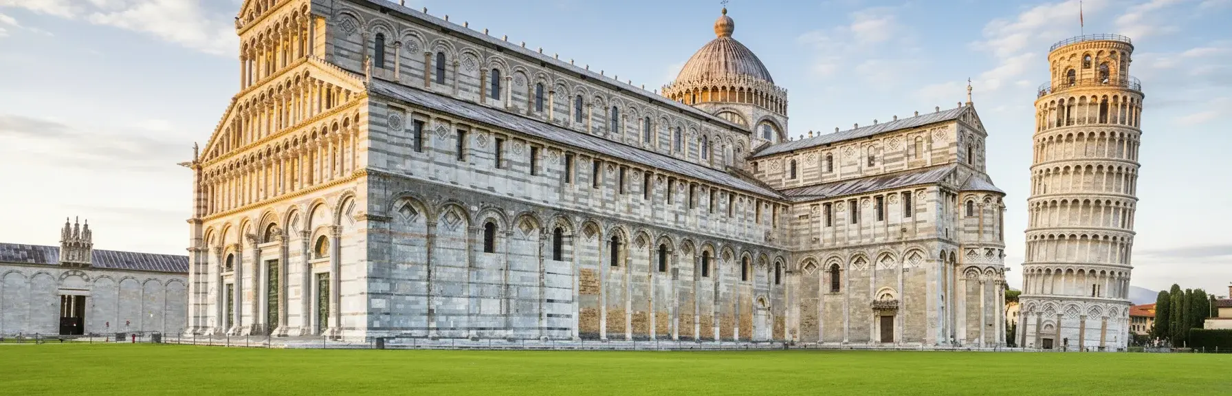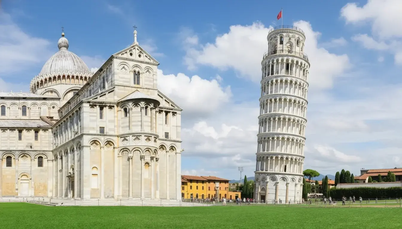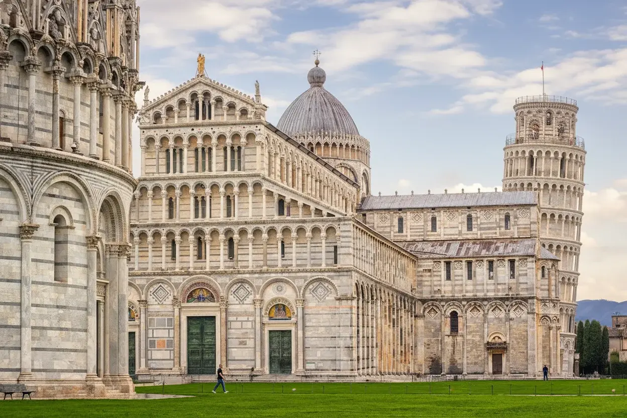Pisa, including the Leaning Tower, Cathedral, Baptistery, and Camposanto. Recognized