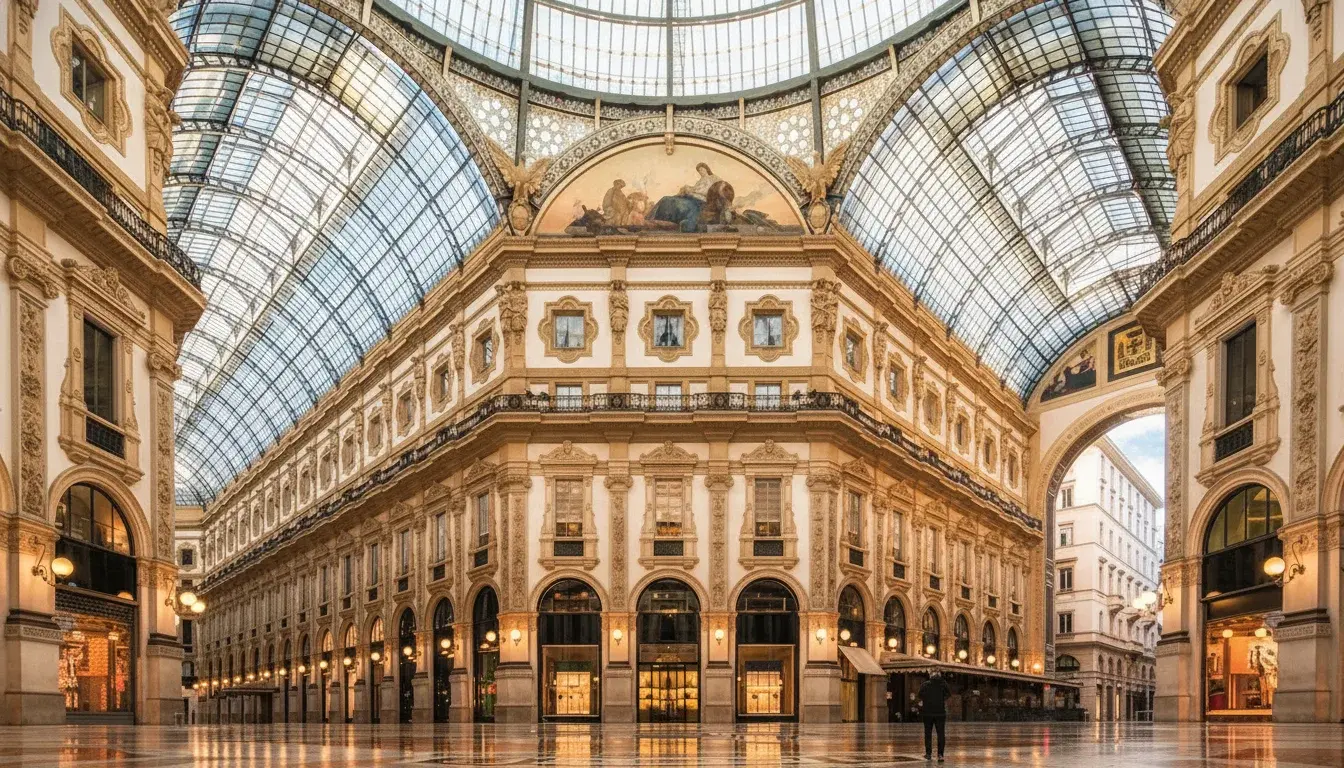 • 10:30 AM – Walk 🚶‍♂️ through Galleria Vittorio Emanuele II 🛍️ for shopping 👗 or breakfast ☕😋