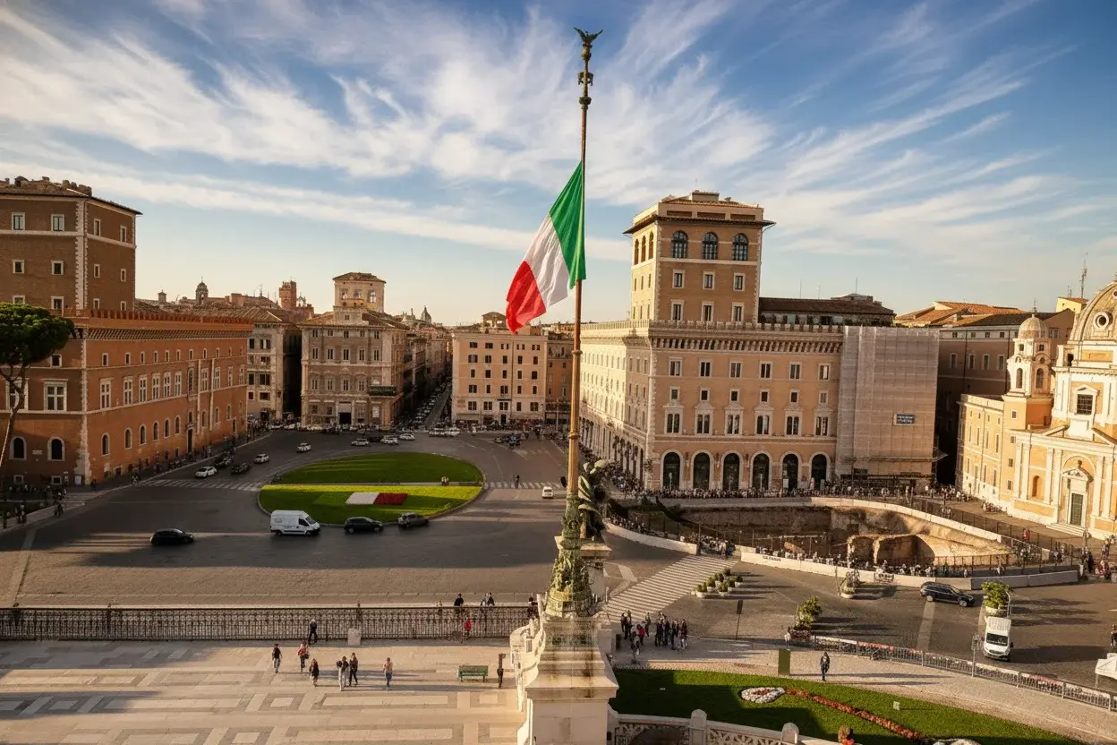Piazza Venezia is one of Rome’s busiest and most historically significant squares. Located at the foot of the Capitoline Hill, it serves as the city’s central traffic hub and a gateway to several key landmarks. Dominating the square is the massive Altare della Patria (Altar of the Fatherland), also known as the Vittoriano, built in honor of King Victor Emmanuel II, the first king of a unified Italy.