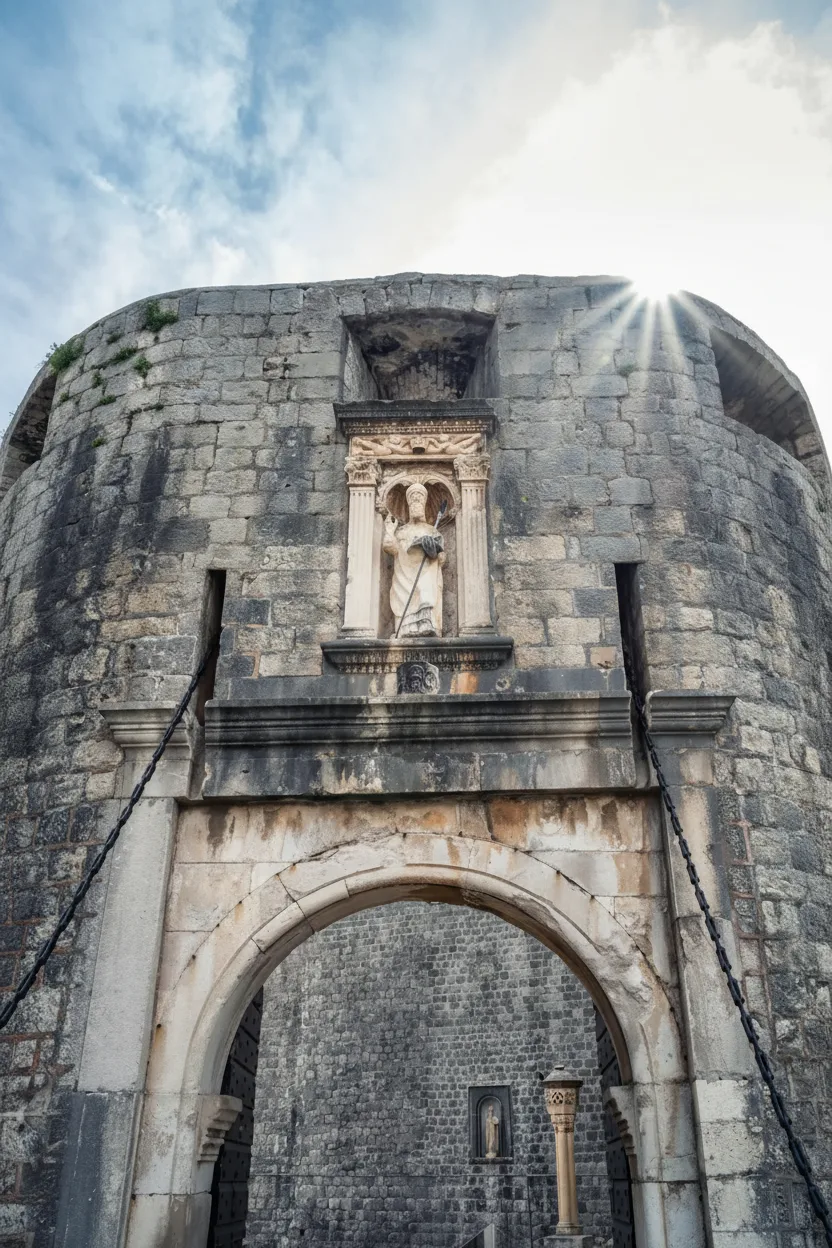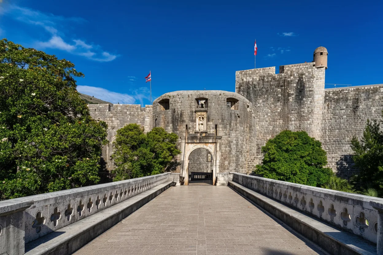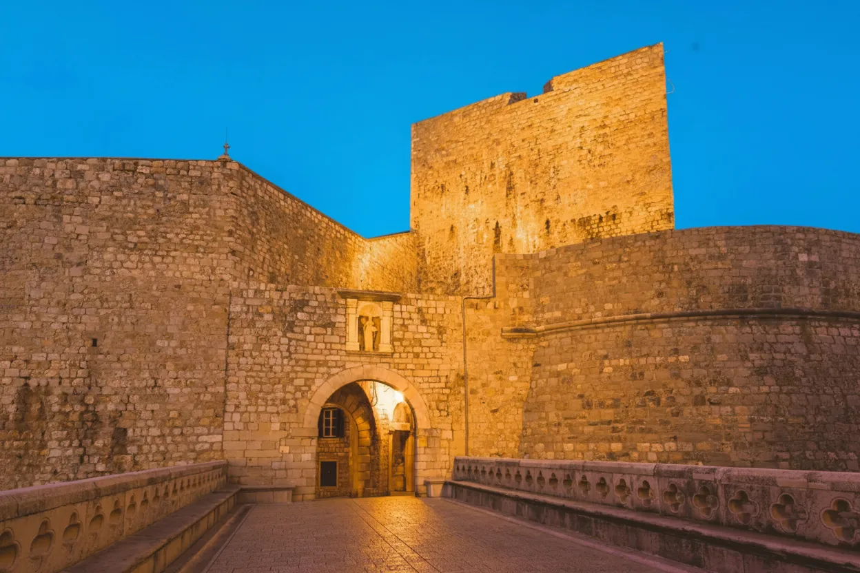 Pile Gate is the main entrance to Dubrovnik Old Town and one of the city’s most important historic gateways. For centuries, it served as the primary access point for travelers entering the fortified city. The gate consists of a stone bridge, outer gate, and inner gate, creating a dramatic entrance framed by massive city walls. It remains a busy and symbolic location in modern Dubrovnik. For travelers, Pile Gate marks the beginning of the Old Town experience and offers a strong sense of arrival into Dubrovnik’s historic heart.