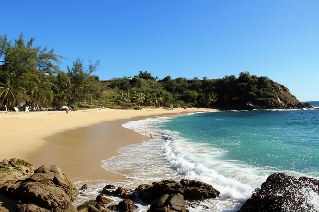 Playa Coral is a small and peaceful beach located near Puerto Escondido, Oaxaca, Mexico. This beach is known for its clear waters and rocky areas, making it one of the better spots for snorkeling and observing marine life close to the shore. The sheltered setting creates calmer water conditions compared to open ocean beaches. Visitors who enjoy quiet beach time, underwater views, and natural surroundings will find Playa Coral a pleasant and relaxing destination.