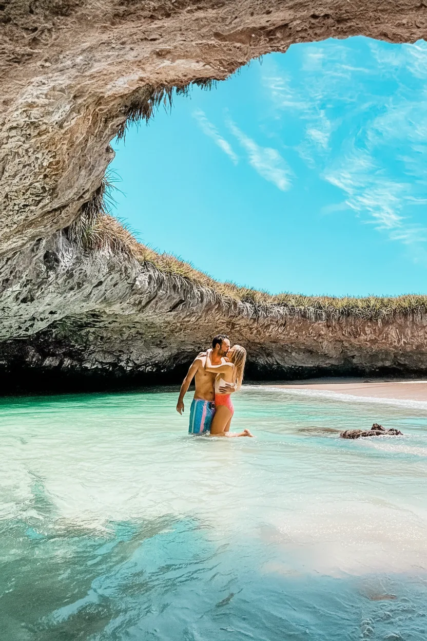 Playa del Amor, also known as Lover’s Beach, is one of the most beautiful and peaceful beaches in Cabo San Lucas, Mexico. Located near El Arco at Land’s End, this beach lies on the calm Sea of Cortez side, making it ideal for swimming and relaxation. Its soft sand, clear waters, and dramatic rock formations create a stunning natural setting. For travelers, Playa del Amor offers a perfect balance of scenic beauty and quiet escape. It is a popular stop on boat tours and a favorite spot for couples, photographers, and beach lovers seeking a calm environment away from the busy marina.