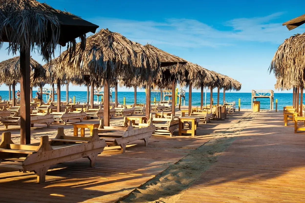 • Beach Clubs (Lidos) 🥂 relax 😌 with umbrellas ⛱️, sunbeds 🪑, and beach bars 🍹🍸