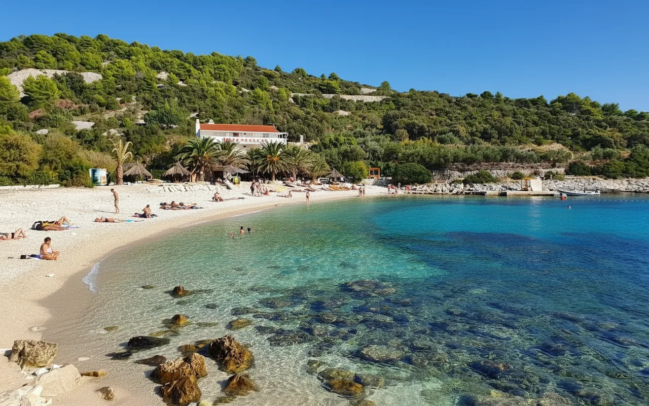 Pokonji Dol Beach is one of the closest and most popular beaches near Hvar Town. Known for its clear waters and relaxed atmosphere, the beach attracts both locals and visitors looking for easy access swimming. The beach features pebbled shores, shallow water near the edge, and open views toward the Adriatic Sea. It is well suited for swimming, sunbathing, and casual beach time. For travelers, Pokonji Dol Beach offers a convenient beach escape just minutes from Hvar Old Town.