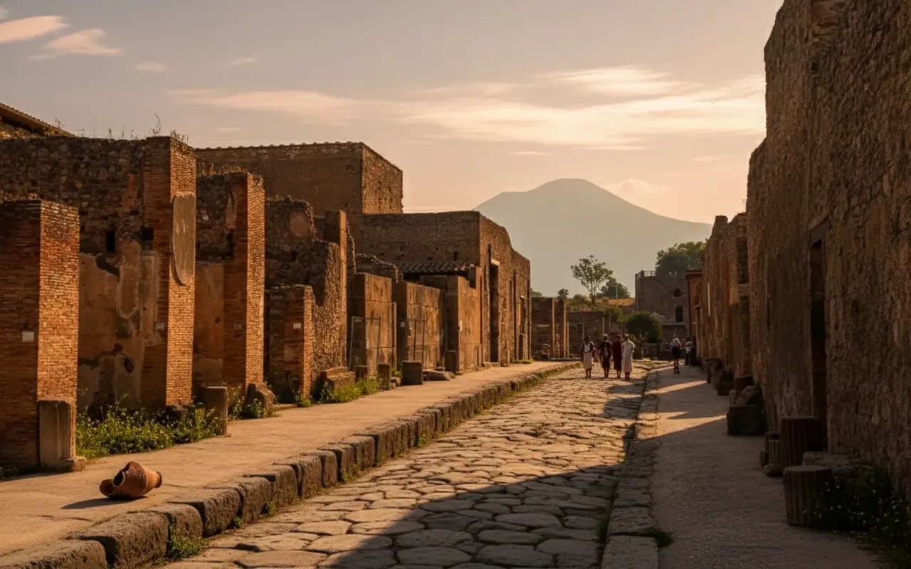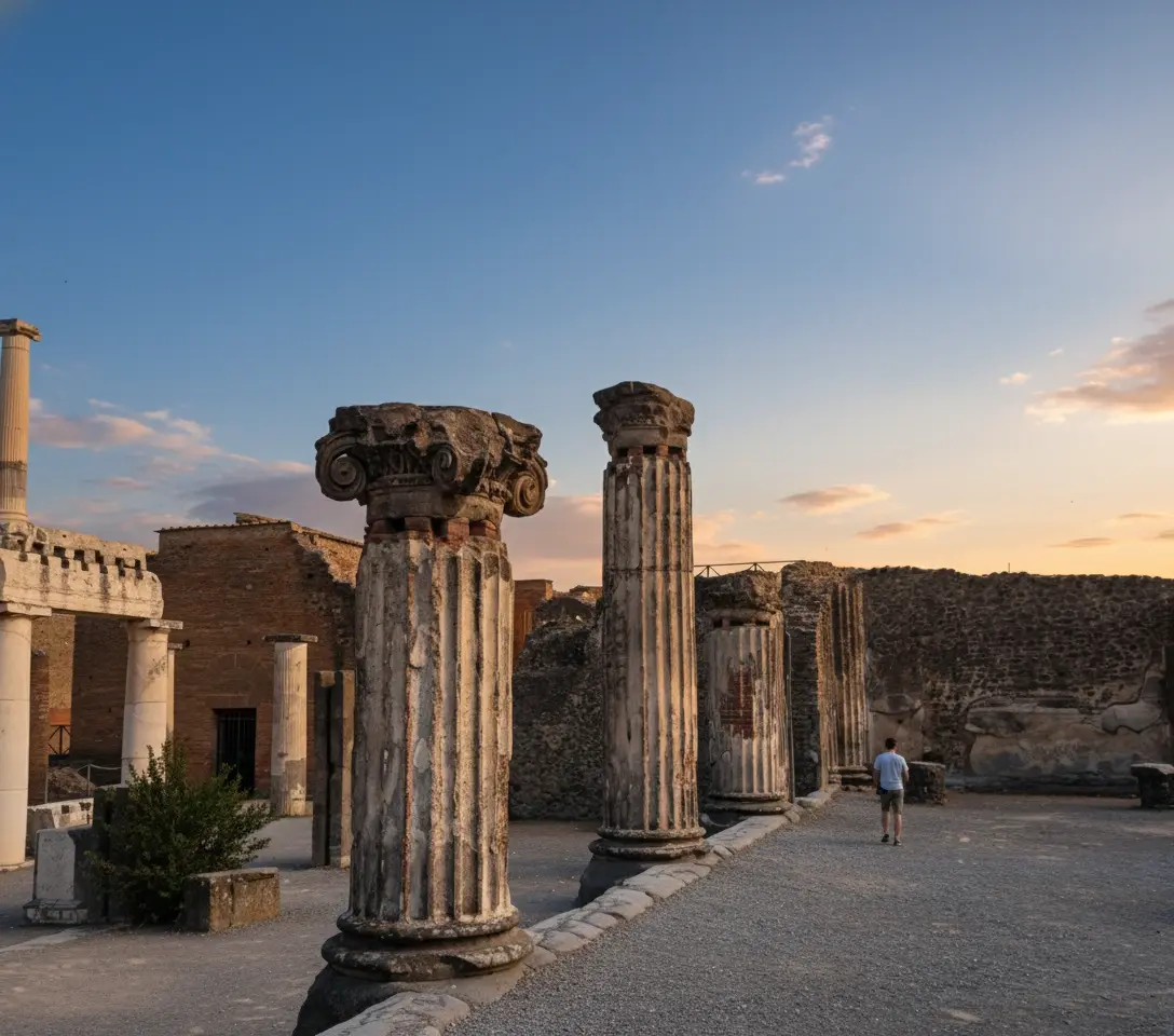 • 9:00 AM – Arrive 🧭 at Pompeii 🏛️ and start exploring the main sites 🗺️📜