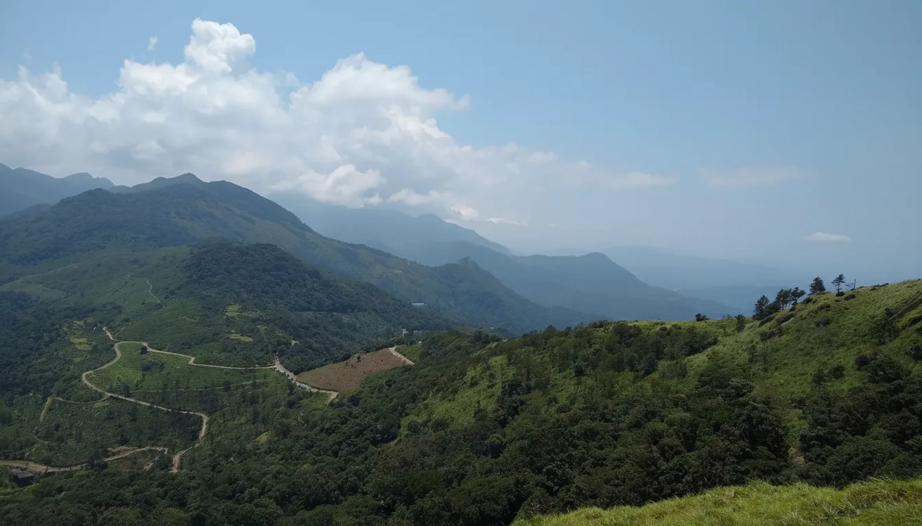 The area features misty viewpoints, forest trails, and tea plantations along the route. Ponmudi