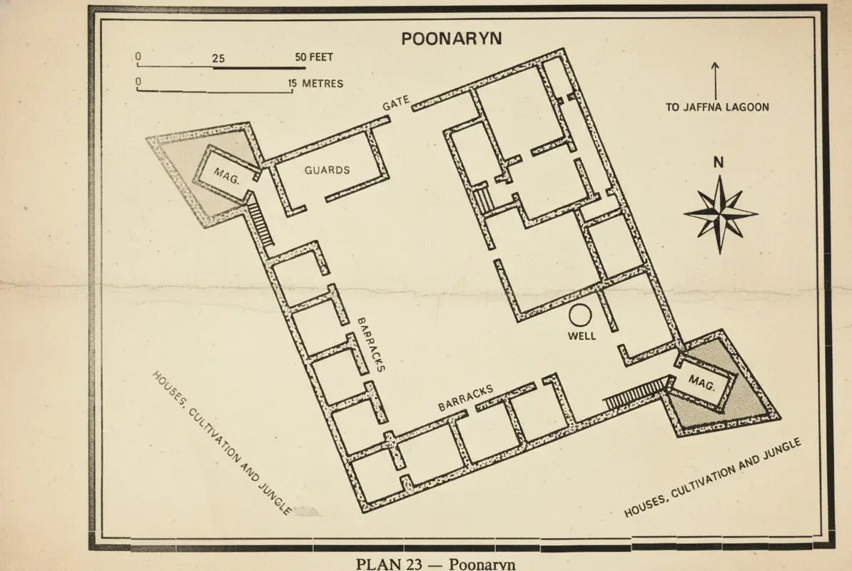 📌Pooneryn Fort, Pooneryn, Kilinochchi District, Northern Province, Sri Lanka👉View on Google MapsThe fort is located about 45 km west of Kilinochchi Town, near the shores of the Palk Strait and close to Sangupiddy Bridge.