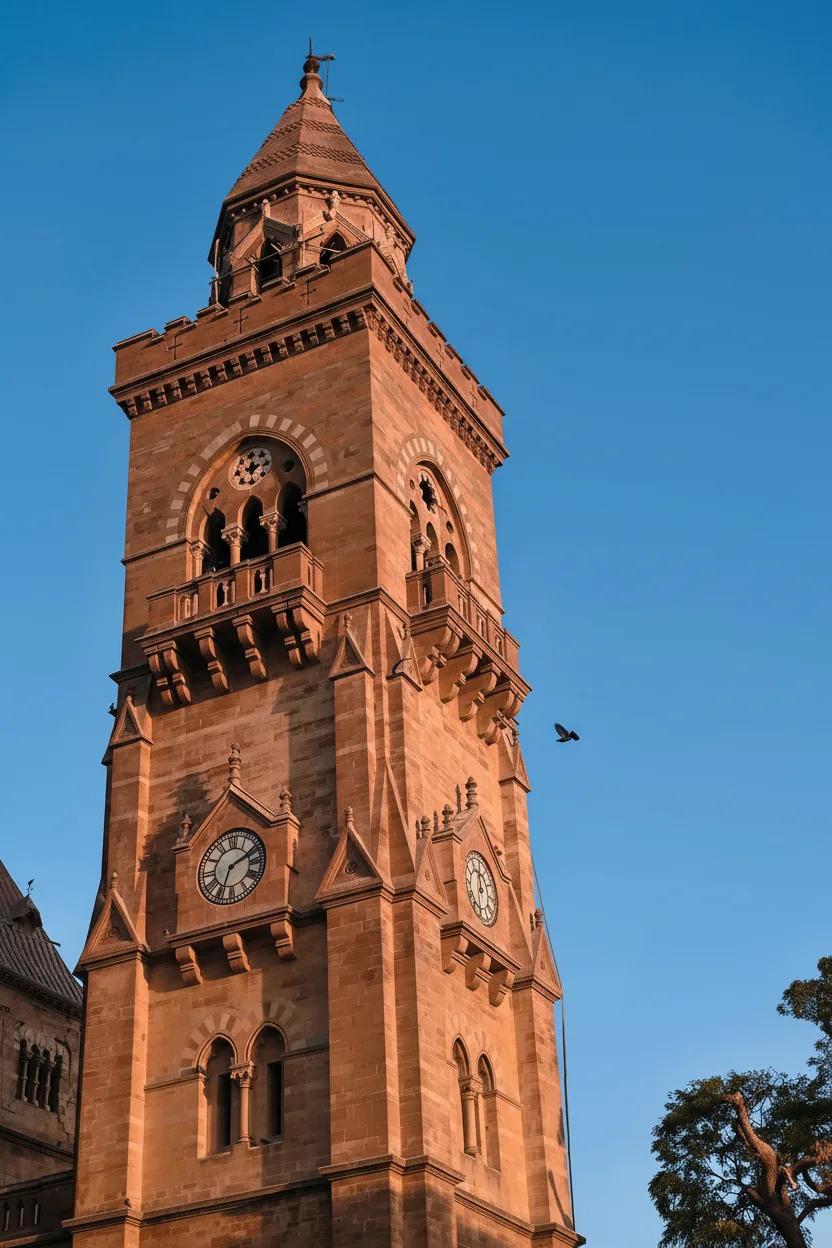 prominent clock tower. The structure reflects the royal ambitions and global influences of