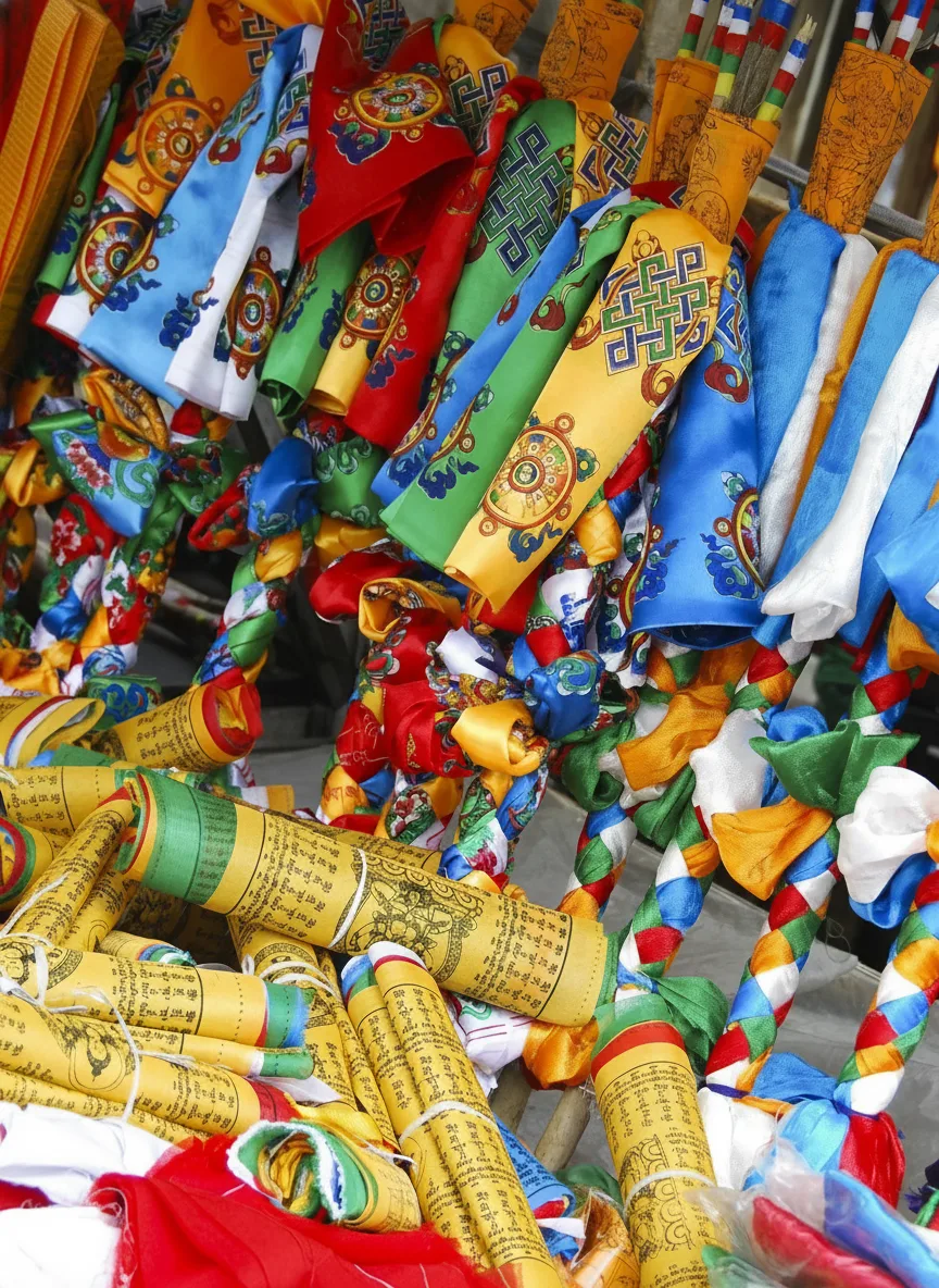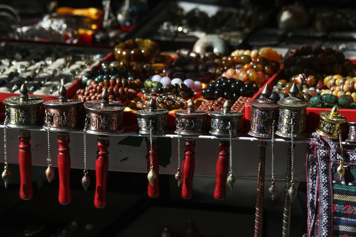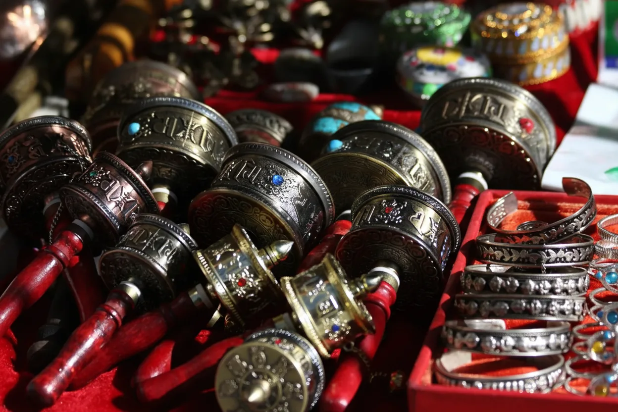 • 🌀 Spin sacred 🕉️ prayer wheels respectfully while walking clockwise along the Barkhor route ✨