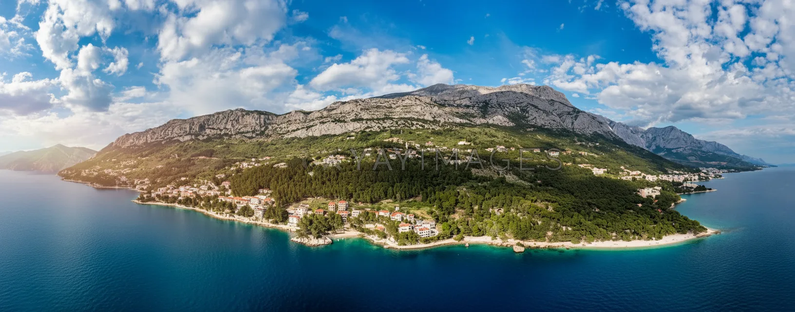 town of Brela along the Makarska Riviera. It is best known for its crystal-clear waters, white pebble
