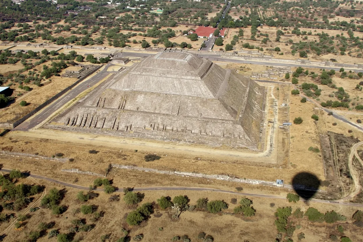 of the ancient city of Teotihuacán. The surrounding plazas, temples, and ceremonial paths