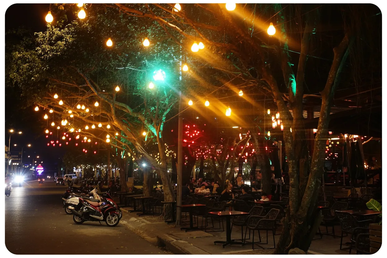 - 🍢 Taste fresh Vietnamese street food where seafood stalls 🦐 serve grilled snacks and local evening favorites 🌃