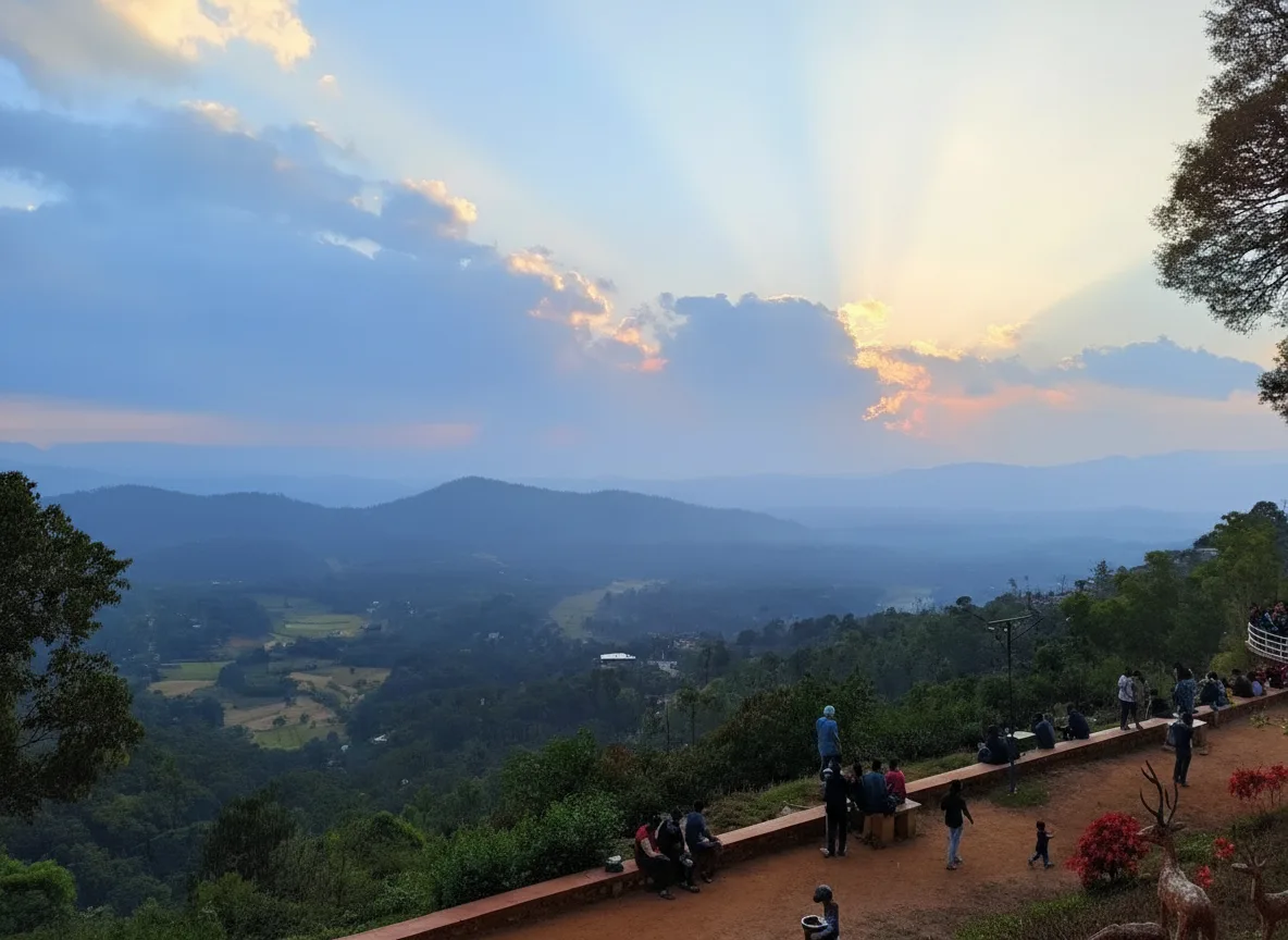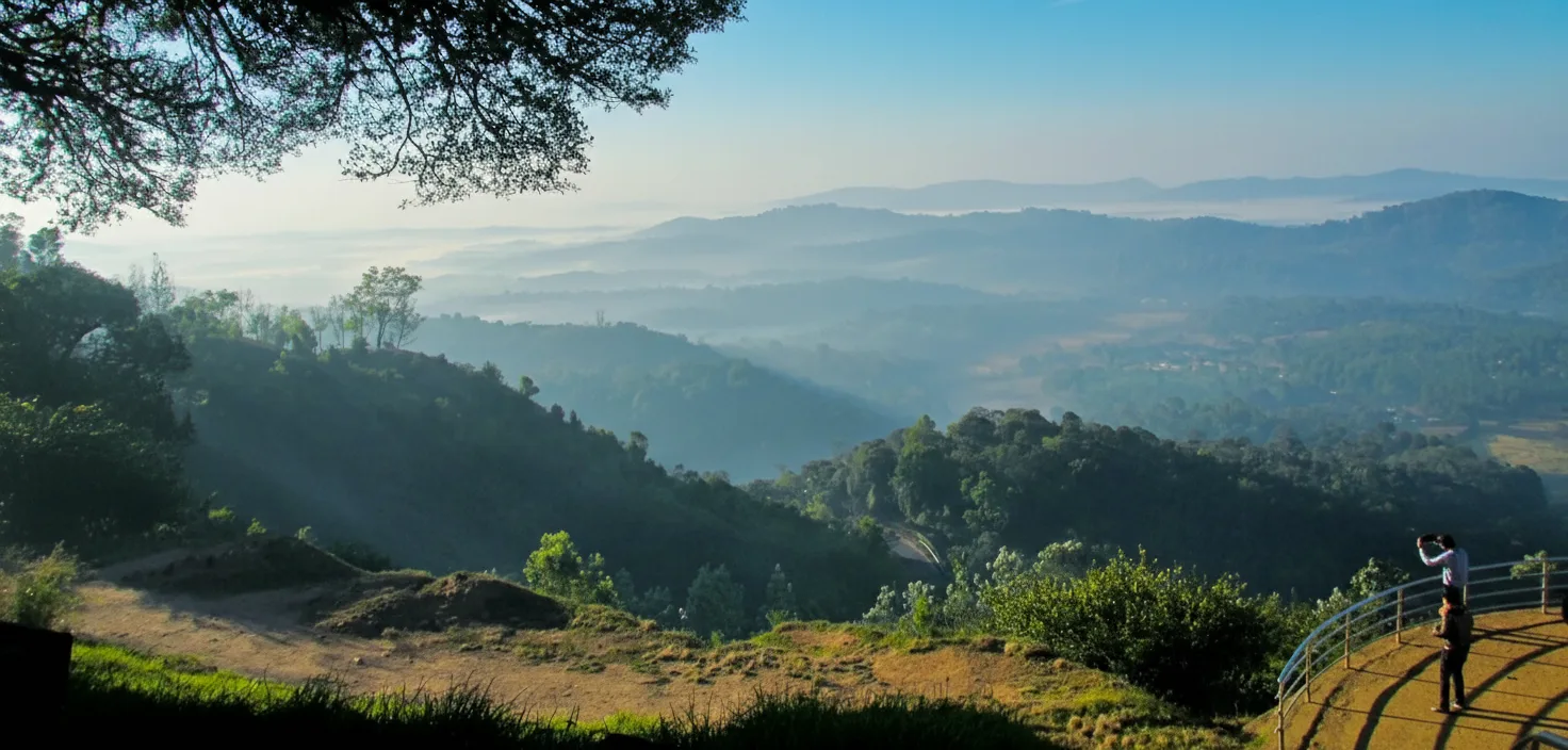 Raja’s Seat is a well-known viewpoint located in Madikeri, Coorg, offering sweeping views