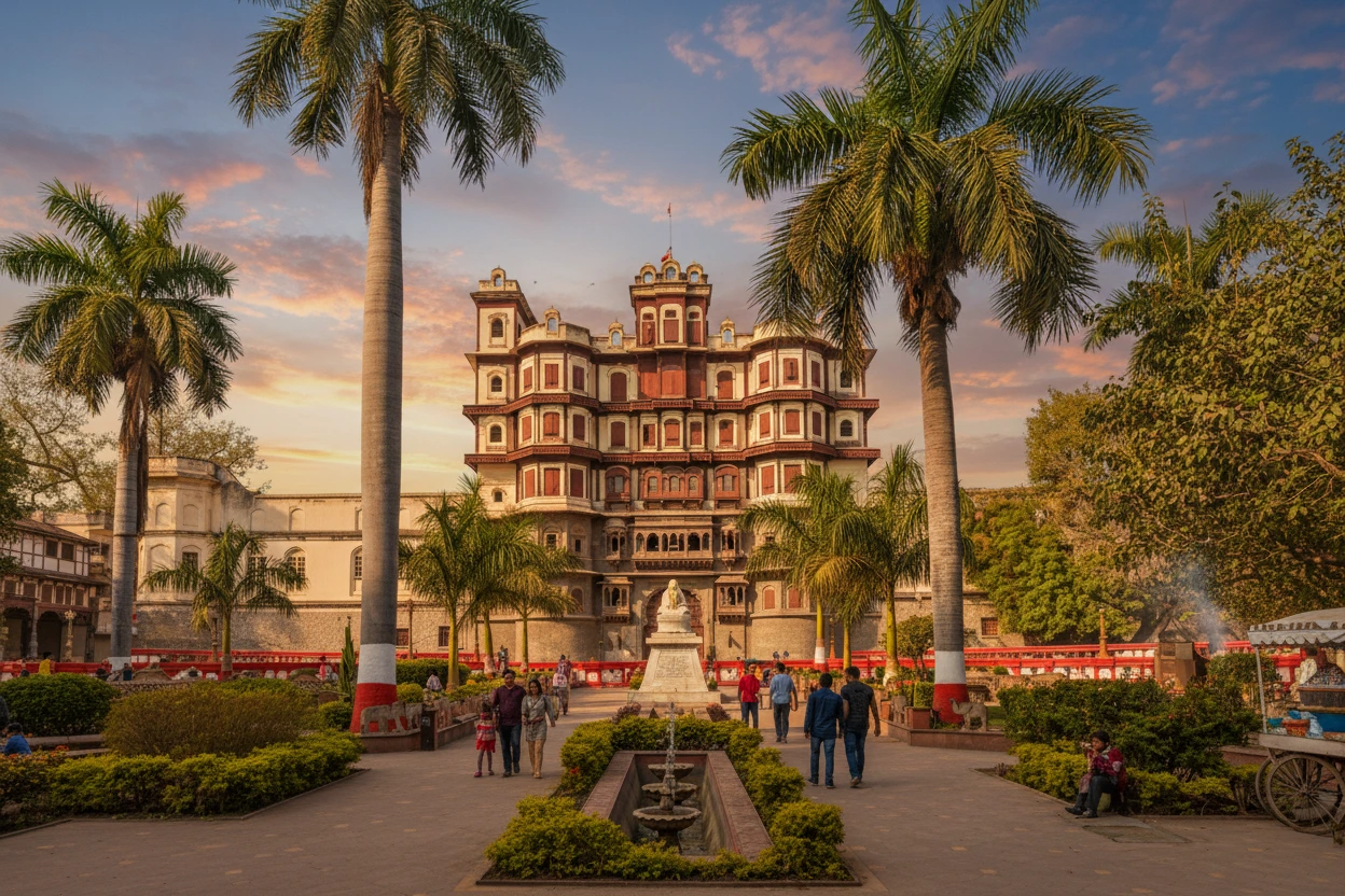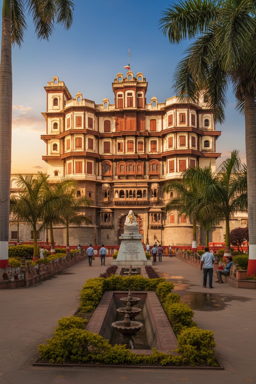 Rajwada Palace is one of the most iconic historical landmarks in Indore, Madhya Pradesh. Built by the Holkar dynasty more than two centuries ago, the palace reflects a blend of Maratha, Mughal, and French architectural styles. Its grand wooden entrance, balconies, and central courtyard highlight the royal heritage of the city.
