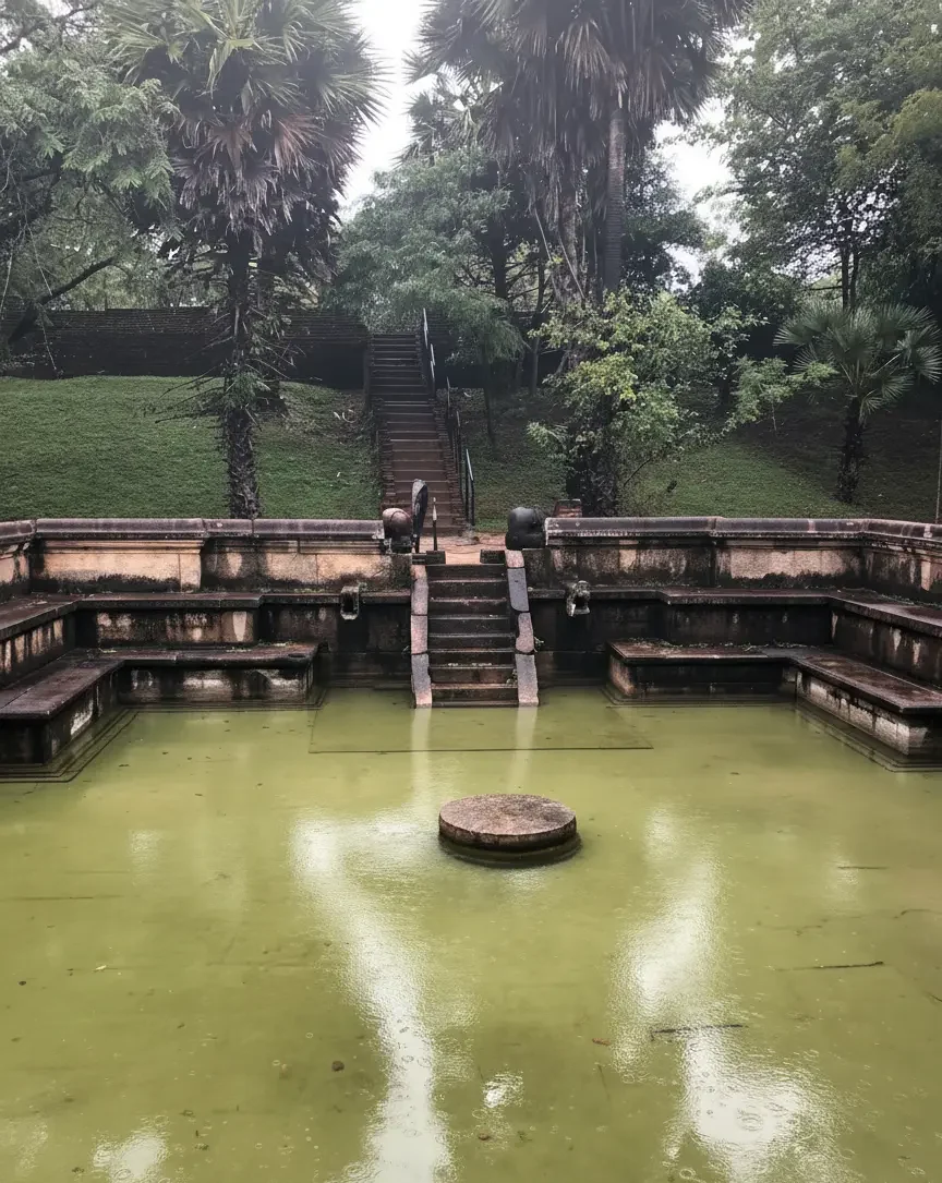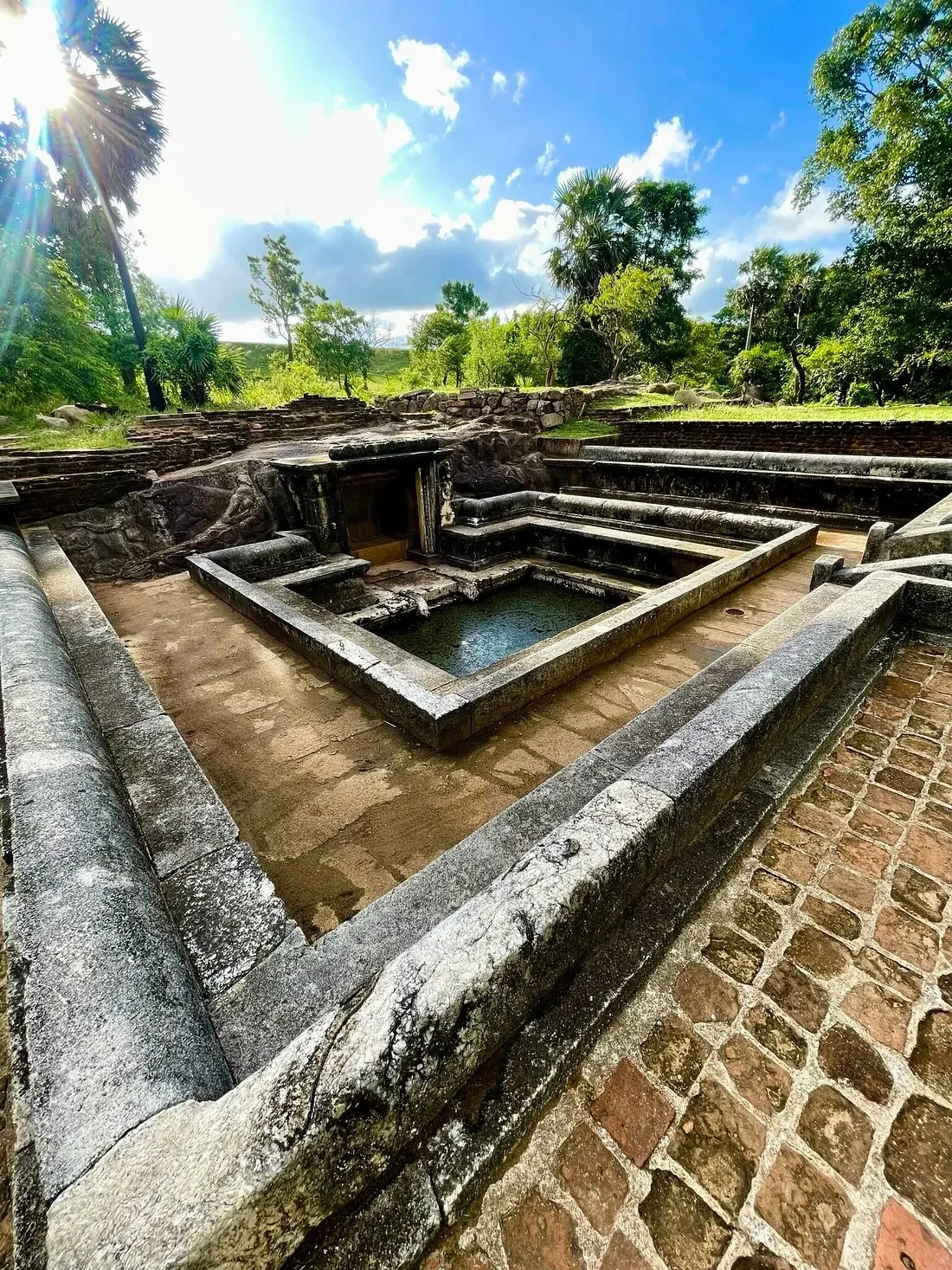 Spread across several acres, Ranmasu Uyana features stone ponds, bathing platforms, fountains,