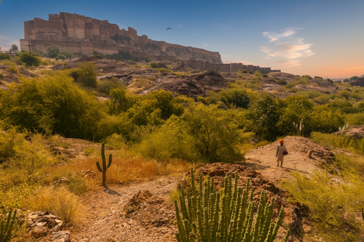 Rao Jodha Desert Rock Park is a unique nature park located at the base of Mehrangarh Fort in Jodhpur. The park was created to restore the natural ecology of the rocky desert landscape that surrounds the fort. For travelers, the park offers peaceful walking trails, native desert plants, and scenic viewpoints. It is an ideal place for nature lovers who want to experience Jodhpur’s natural environment alongside its history.