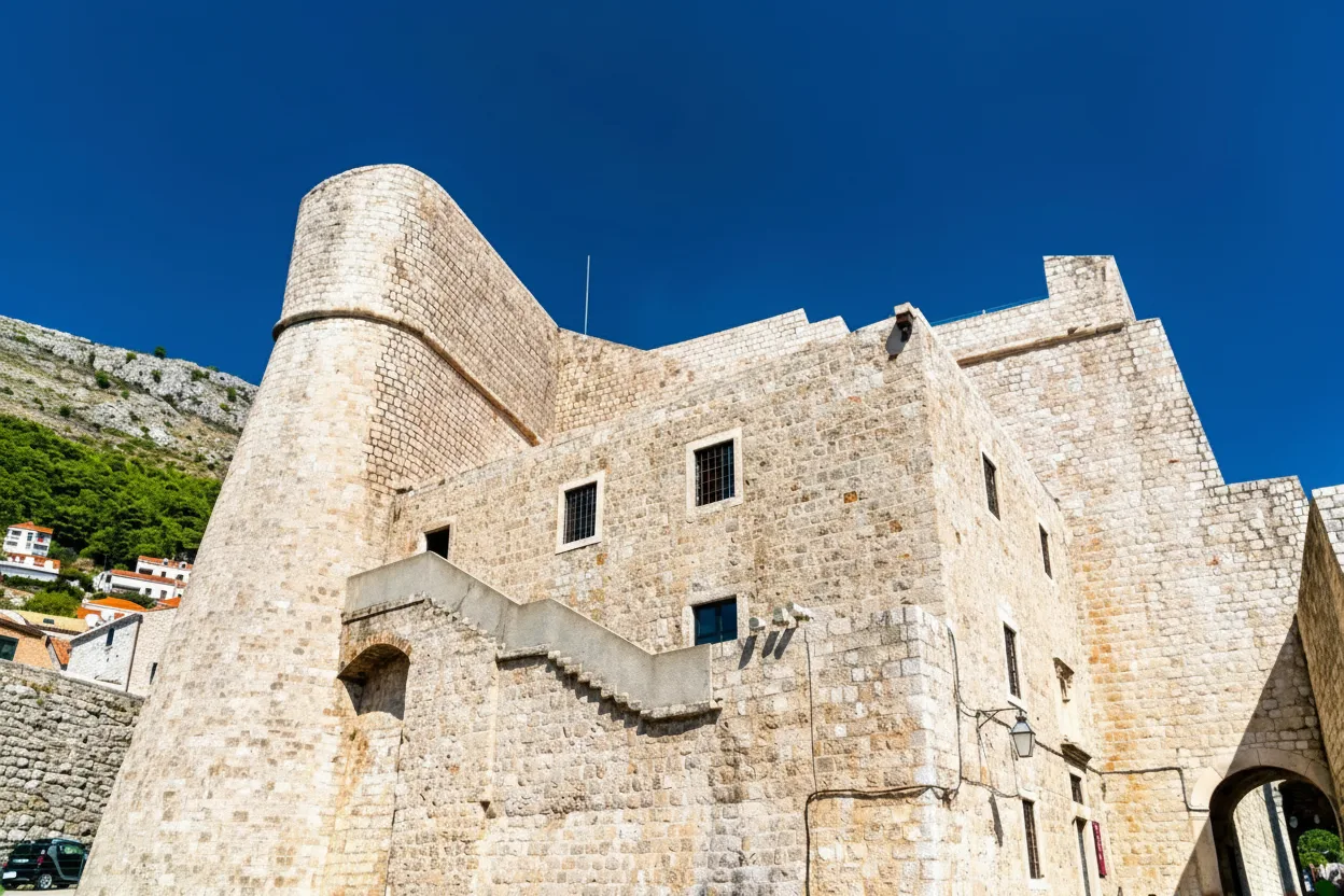Revelin Fortress stands as a powerful defensive structure guarding the eastern entrance of Dubrovnik Old Town. Built in the 16th century, it was designed to protect the city from land-based attacks and played a vital role in Dubrovnik’s defense system. The fortress features thick stone walls and elevated platforms that once supported heavy artillery. Today, it offers open views of the Old Port and surrounding coastline. For travelers, Revelin Fortress provides a deeper understanding of Dubrovnik’s military history combined with scenic viewpoints.