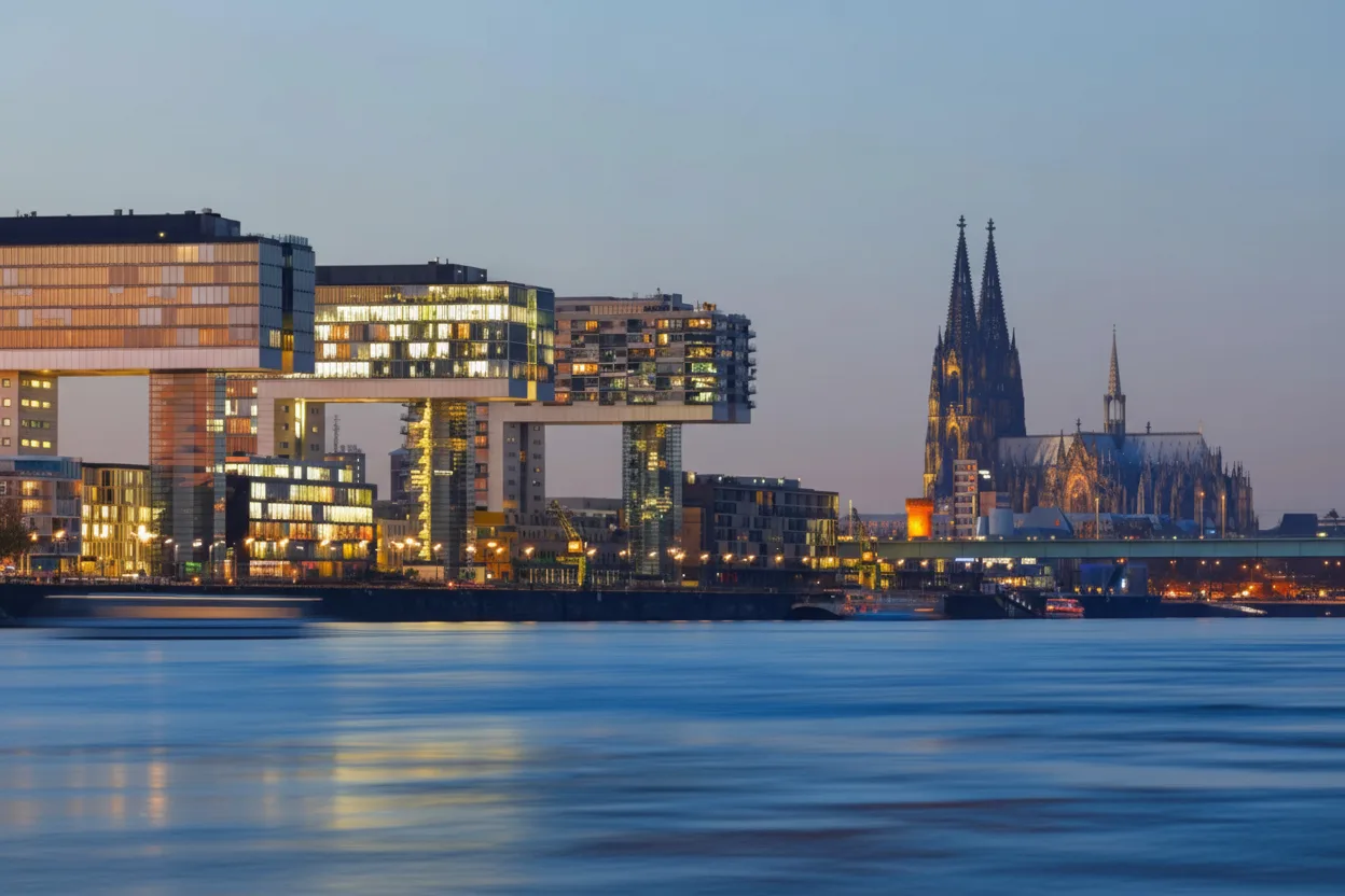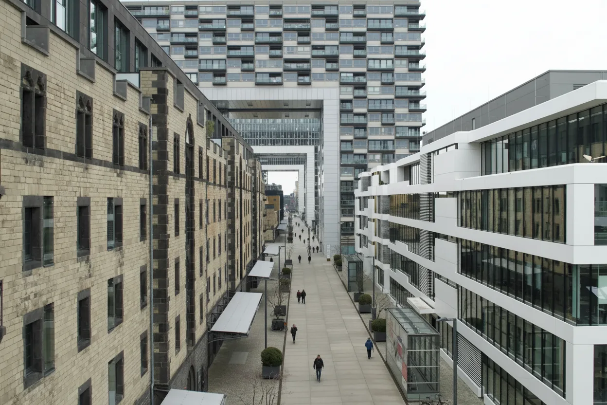 Rheinauhafen District is a modern waterfront area in Cologne known for its contemporary architecture, converted harbor spaces, and lively riverside atmosphere. The district blends historic port structures with modern buildings, including the famous Crane Houses. It is a great place for travelers who enjoy urban walks, photography, and dining by the Rhine.