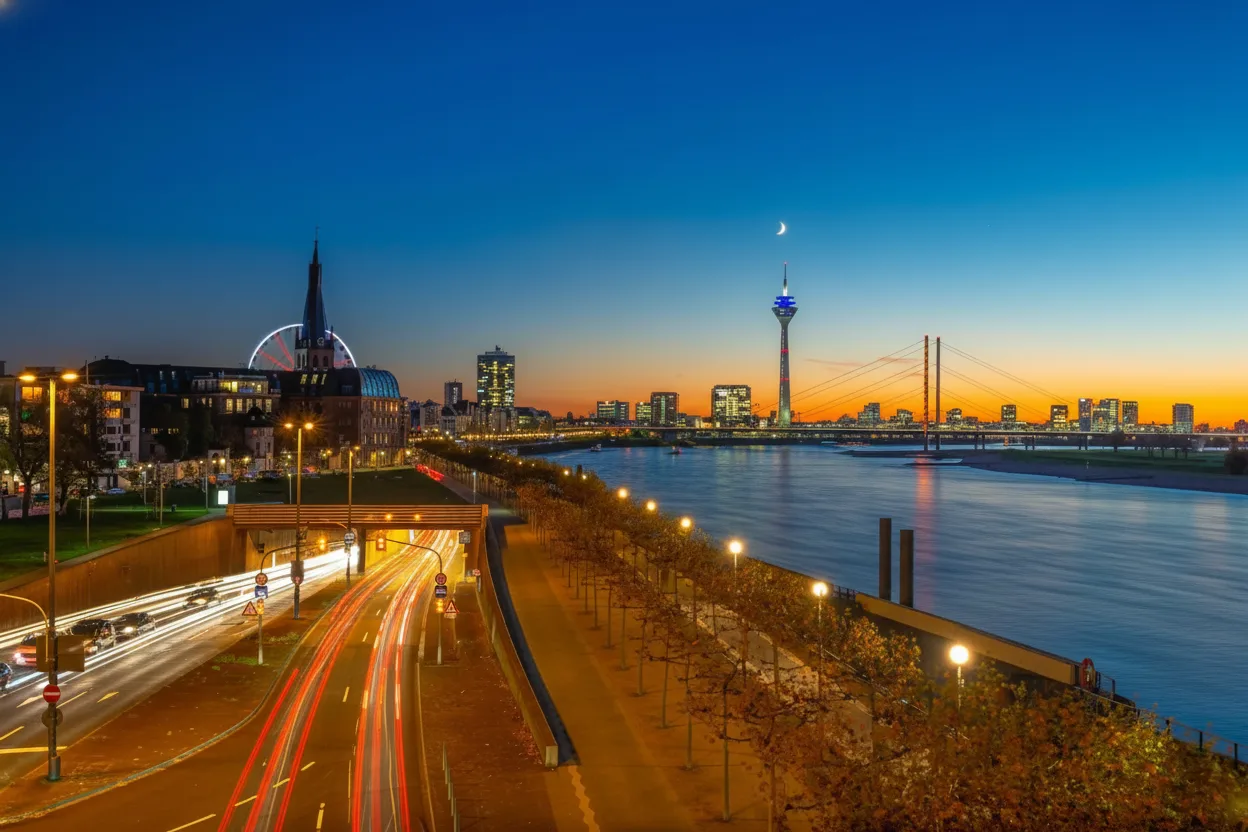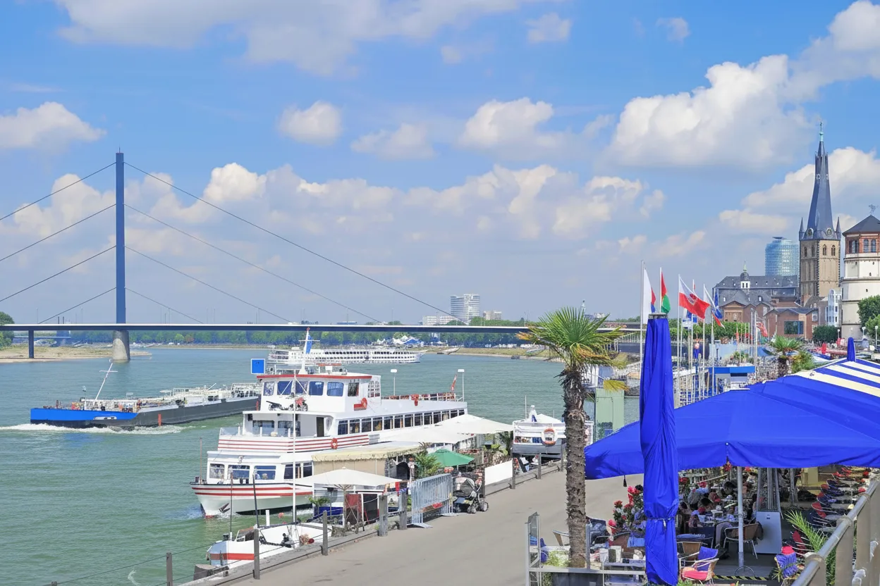 The Rheinuferpromenade is Düsseldorf’s scenic riverside promenade along the Rhine River. It is a popular place for walking, cycling, relaxing, and enjoying city views. The promenade connects the Old Town with modern city areas and offers a calm escape in the heart of Düsseldorf.